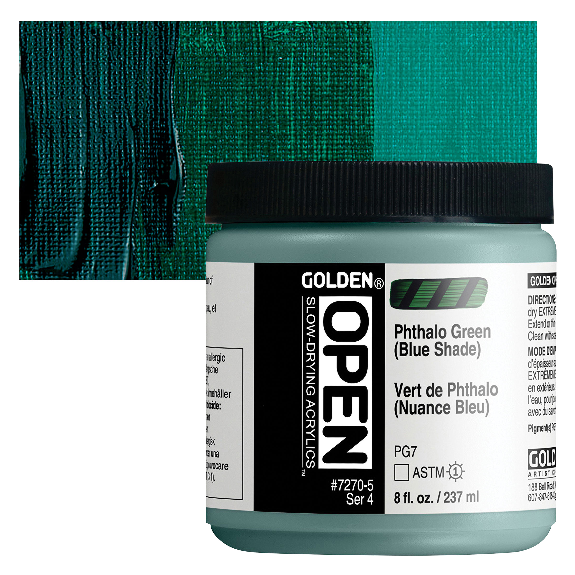Chromium Oxide Green is a dull, dense, willow or pale green color that is completely opaque. It has an average drying time and a low tinting strength. It is fairly flexible in oil form and is suitable for all purposes and mediums. This pigment is less versatile in mixtures than Viridian and Phthalocyanine Green, but mixes well with other colors without overpowering them.
