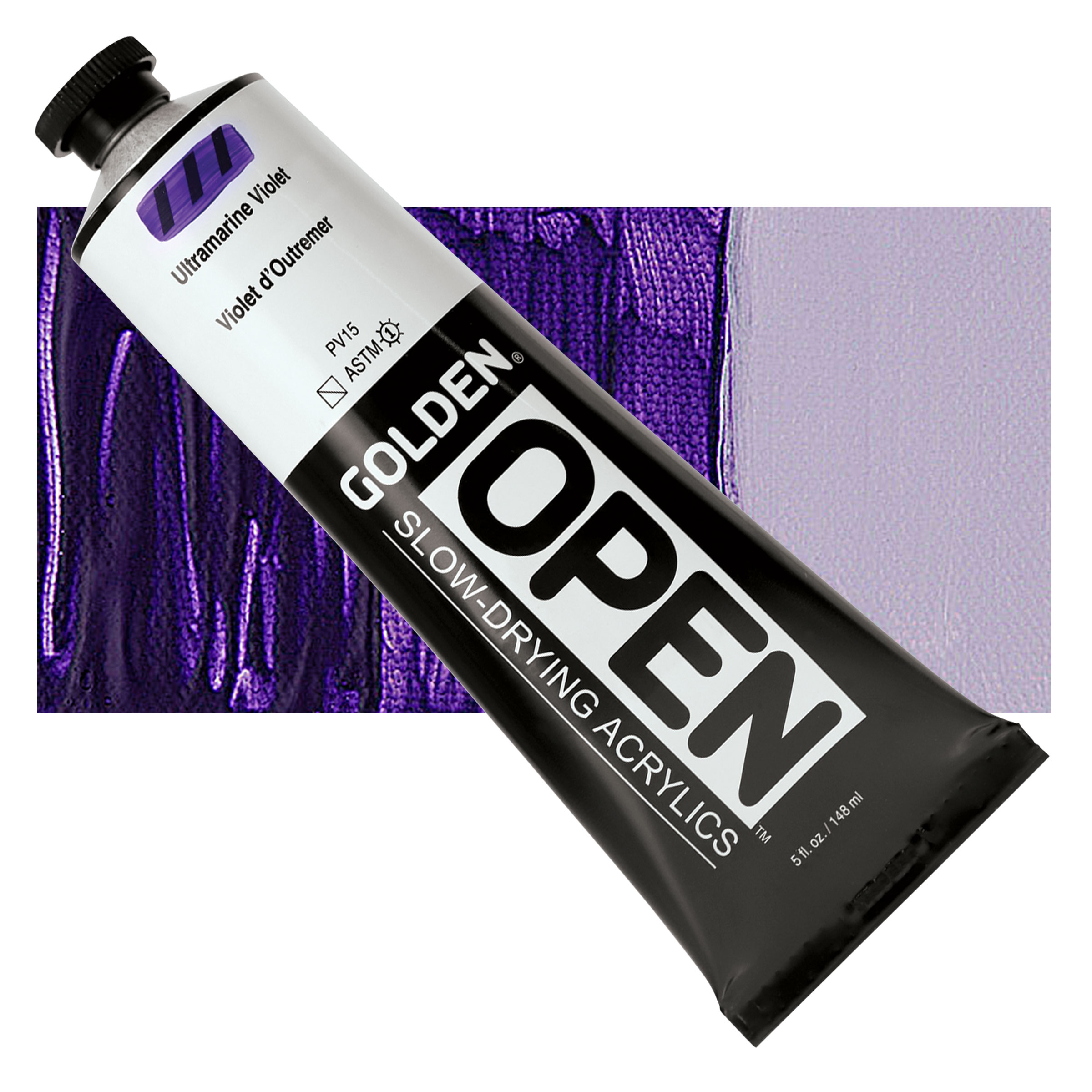 Golden Open Acrylic - Ultramarine Violet, 5 oz Tube and swatch