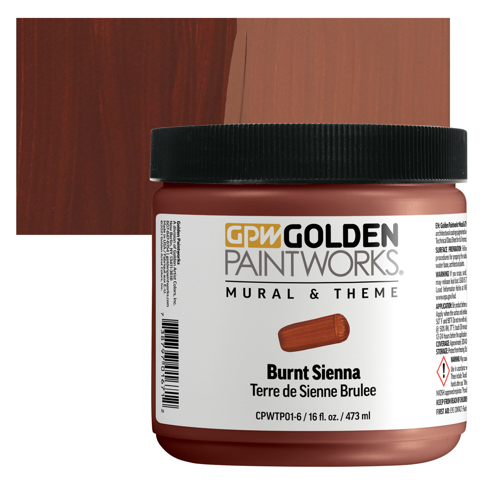 Burnt Sienna is a warm, mid-brown color formed by burning the yellow-brown limonite clay called Raw Sienna. It ranges from semi-opaque to semi-transparent due to the combination of its opaque, red-brown mass tone and its transparent, orangey undertone. It is an excellent mixing complement for blues and greens and creates salmon or peach colored tints when mixed with white. It can be useful for subduing bright colors and does not get chalky in dark mixtures.