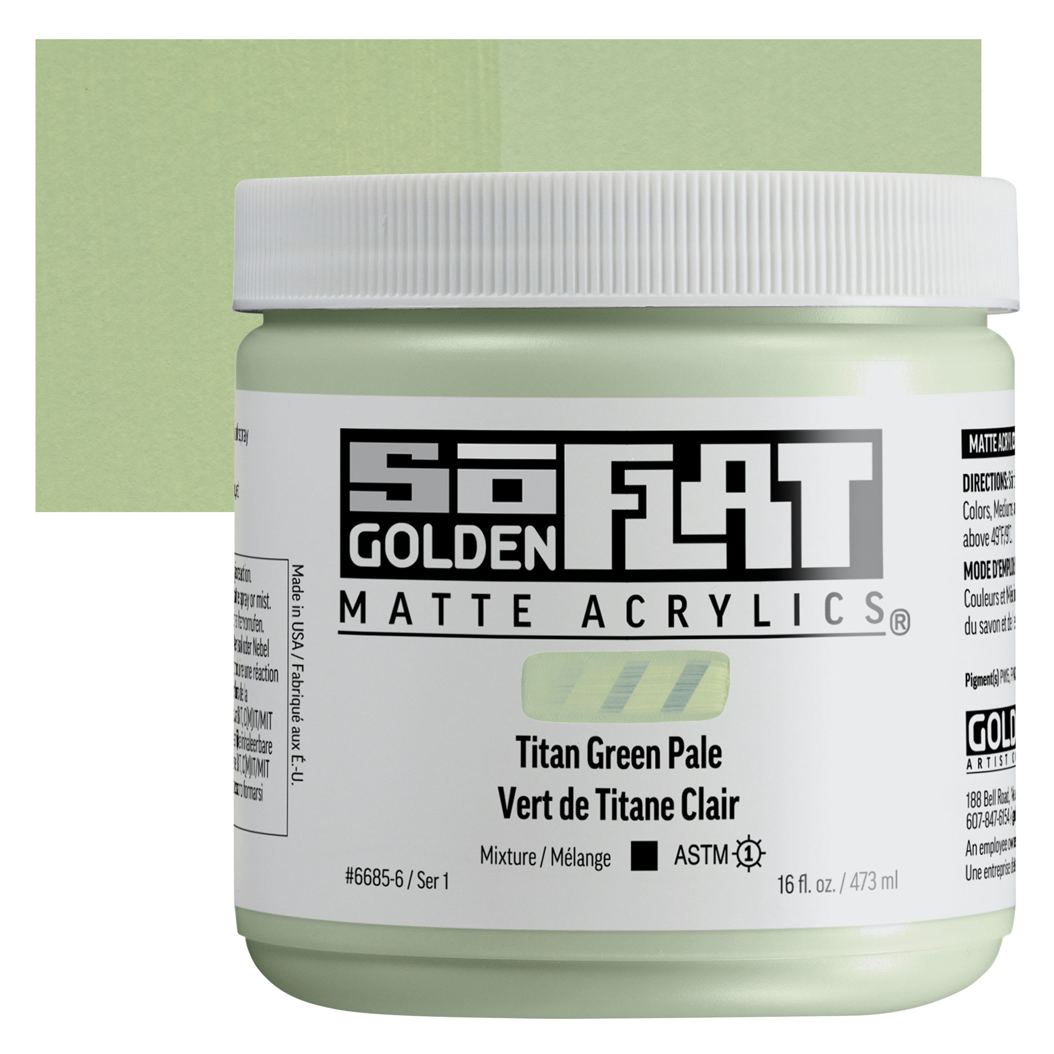 Golden SoFlat Matte Acrylic Paint - Titan Green Pale, 473 ml, Jar and swatch