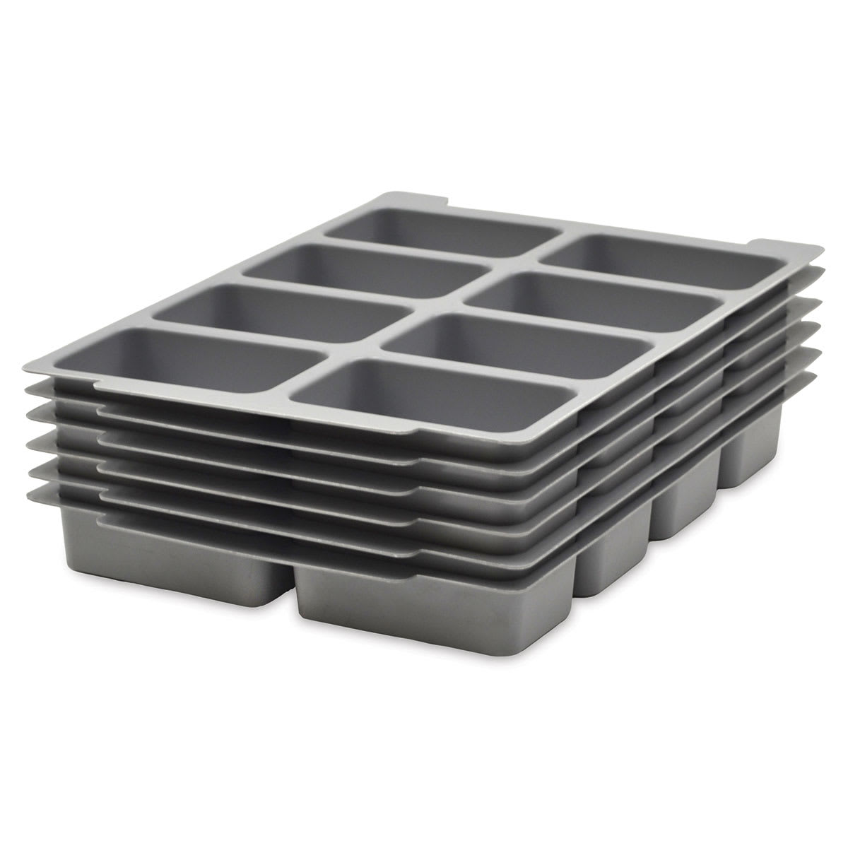 Gratnells Accessories - Set of 6 stacked Gray 8 compartment Tray Inserts shown at slight angle