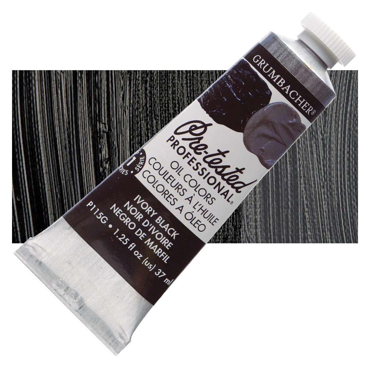 Grumbacher Pre-Tested Artists' Oil Color - Ivory Black, 1.25 oz tube and swatch