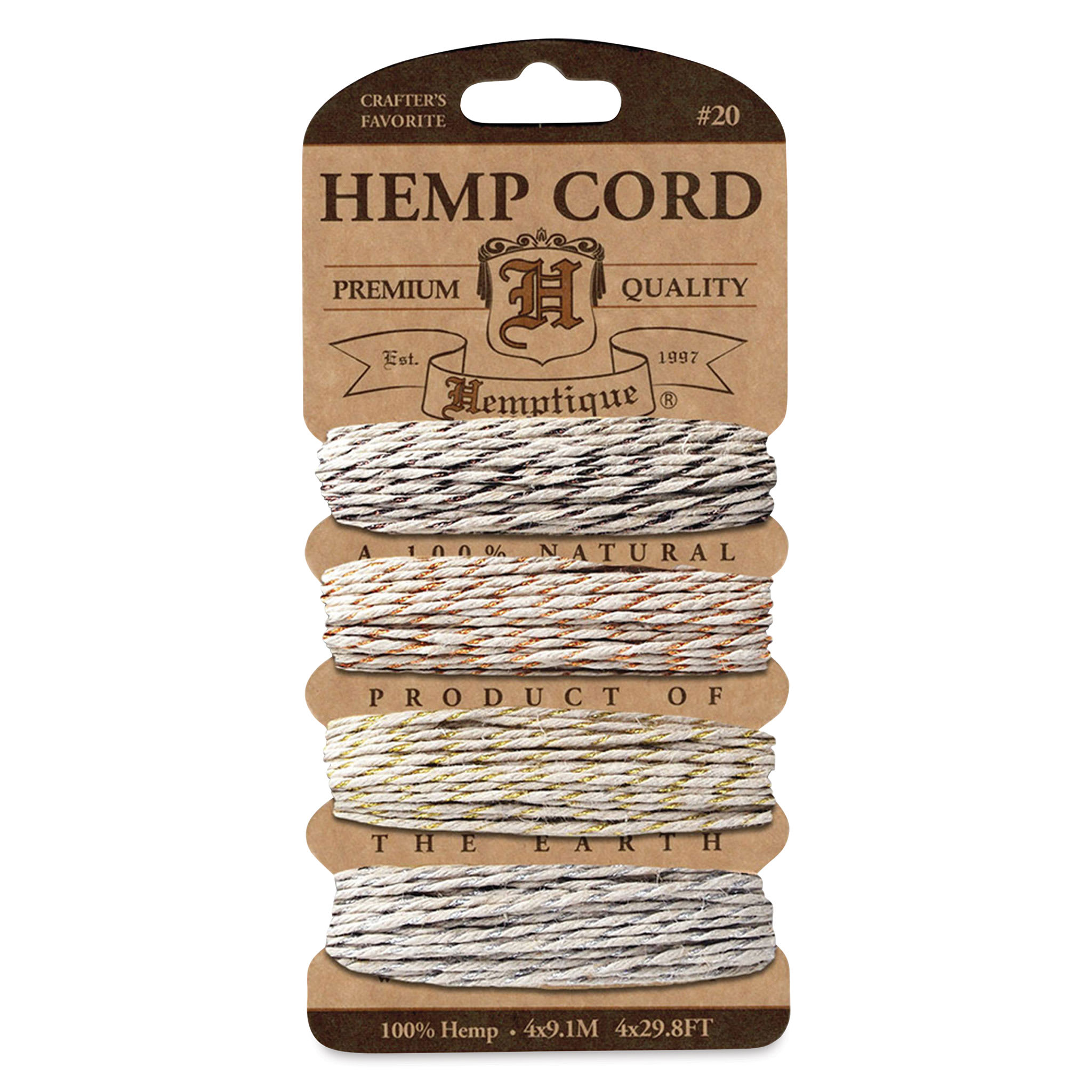 Each card contains four lengths each of Metallic Natural Black, Gold, Copper, and Silver.