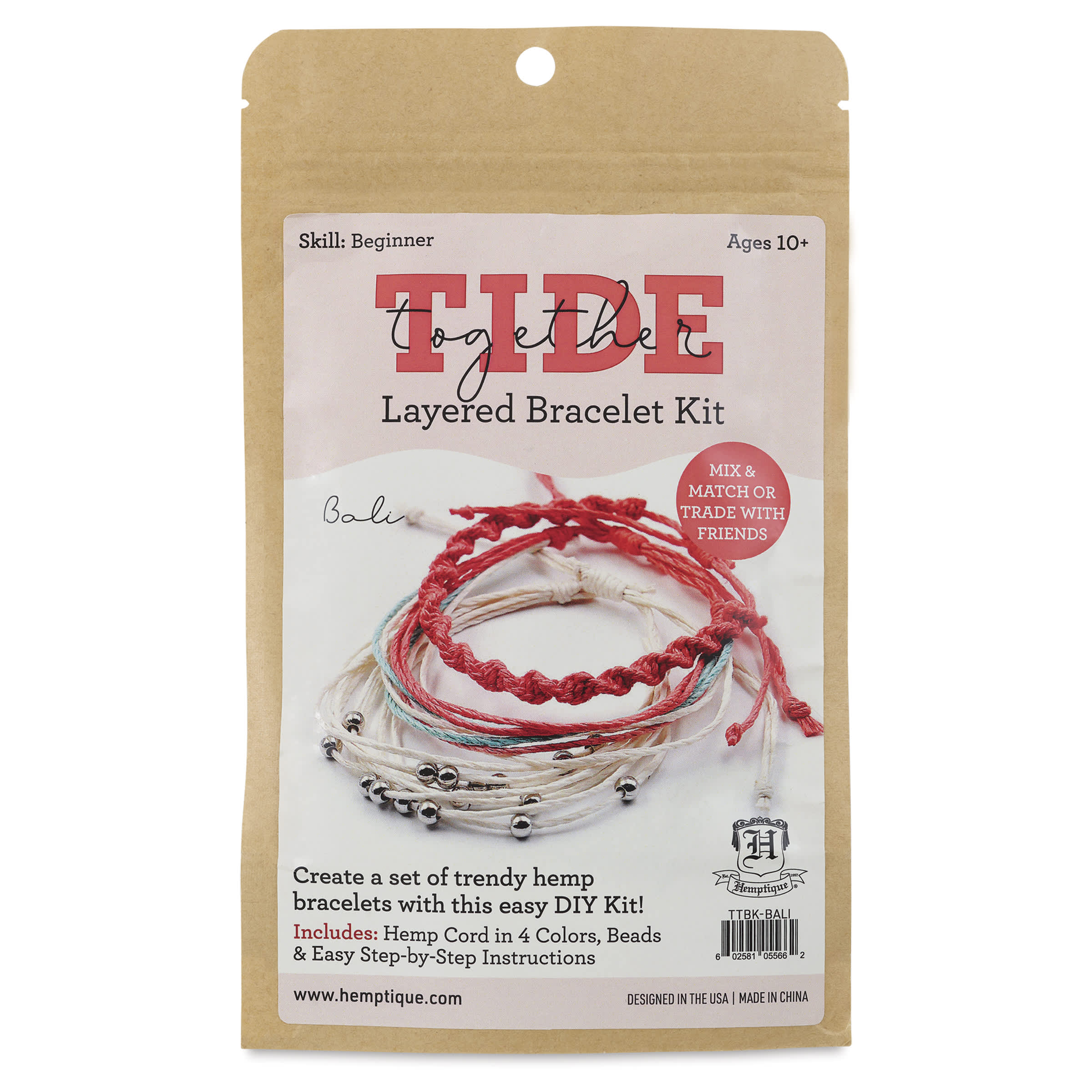 This kit includes four colors of cord, beads, and instructions