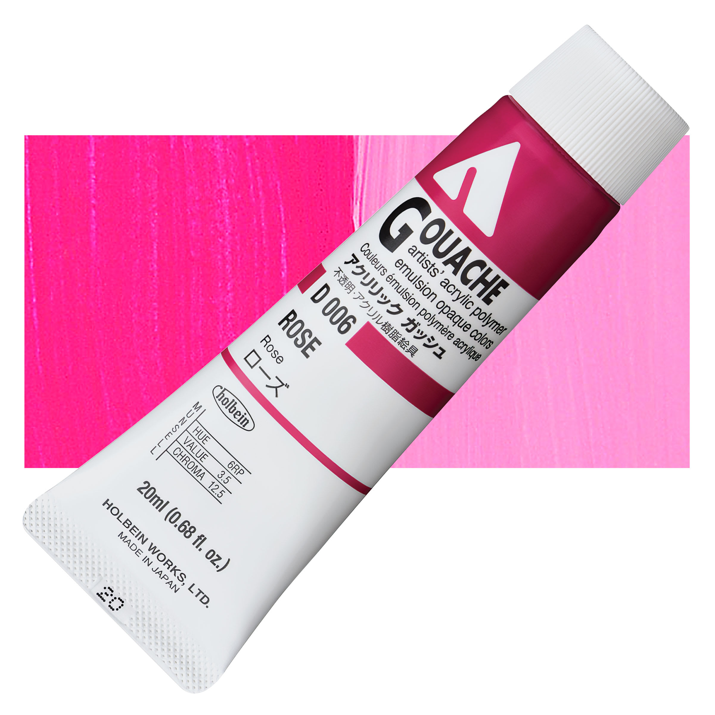 Holbein Acrylic Gouache - Rose, 20 ml tube and swatch