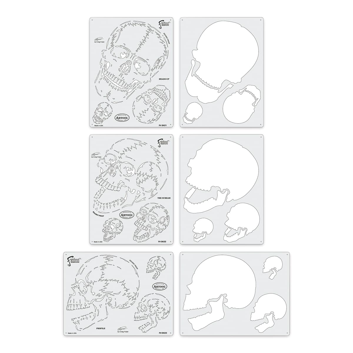 This set includes one each of Heads Up, The Scream, and Profile templates.