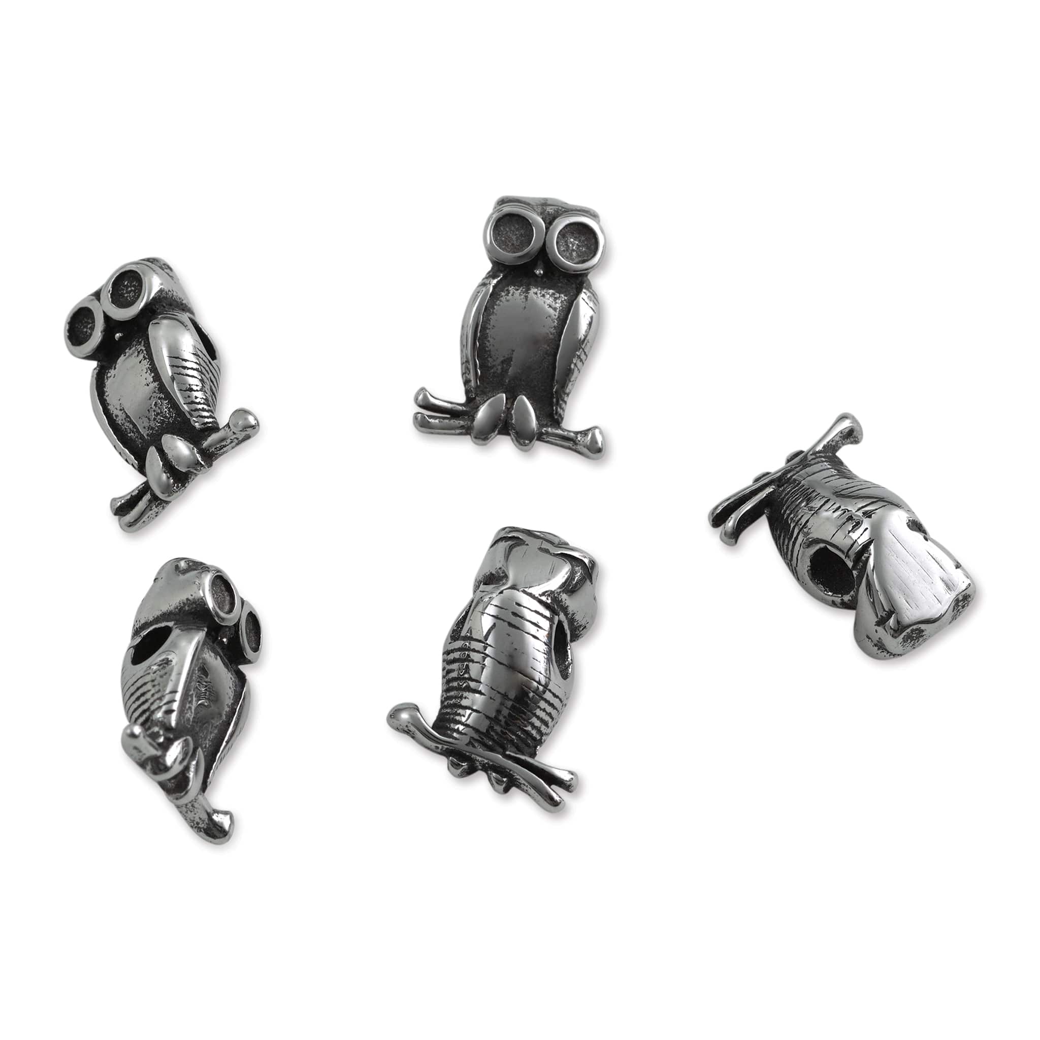 John Bead Antique Stainless Steel Beads - Owl, 11 x 14 mm, Pkg of 5