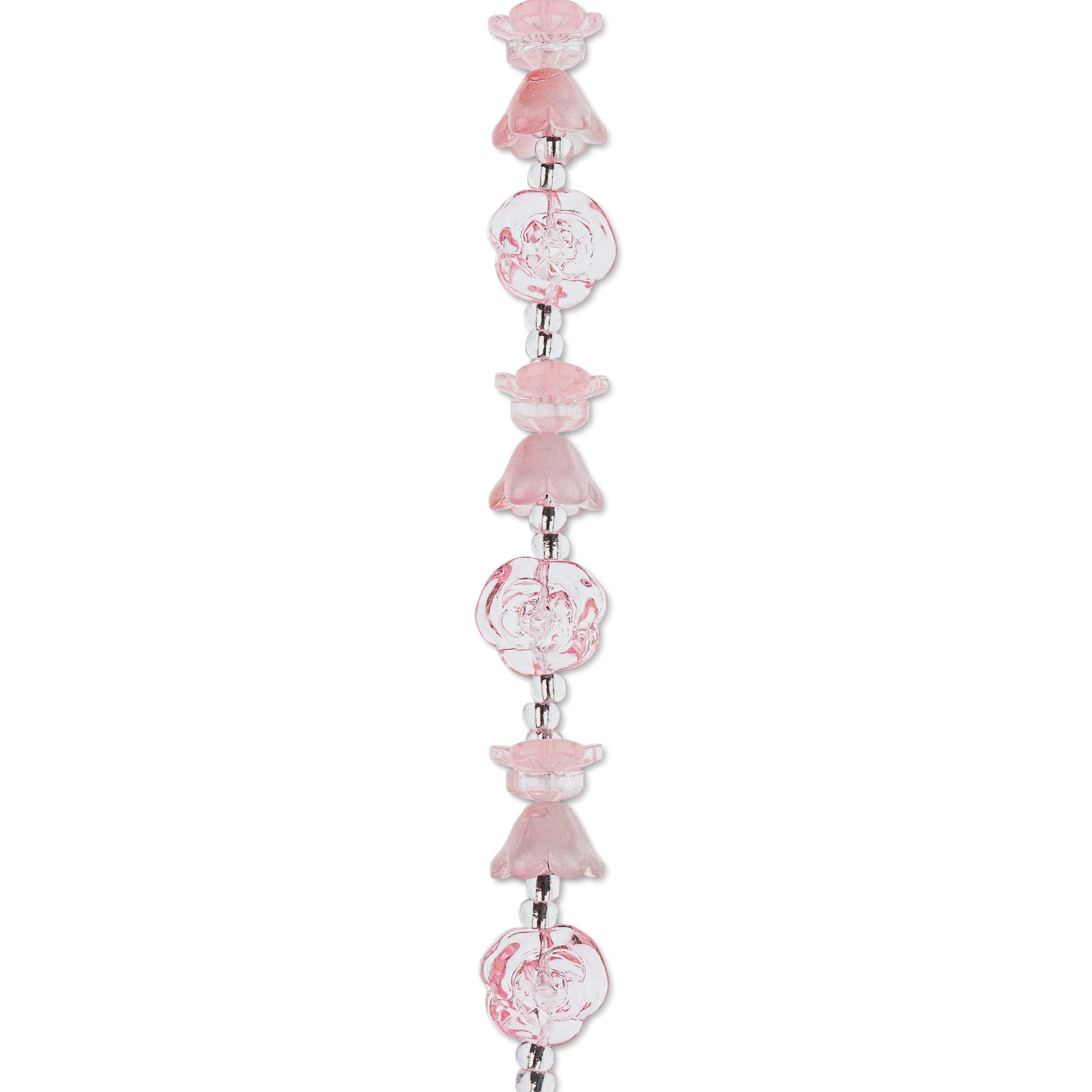 Includes 5 Flower beads (13 mm), 4 Rose beads (14 mm), and 5 Tulip beads (7 mm x 10 mm) in shades of pale pink.