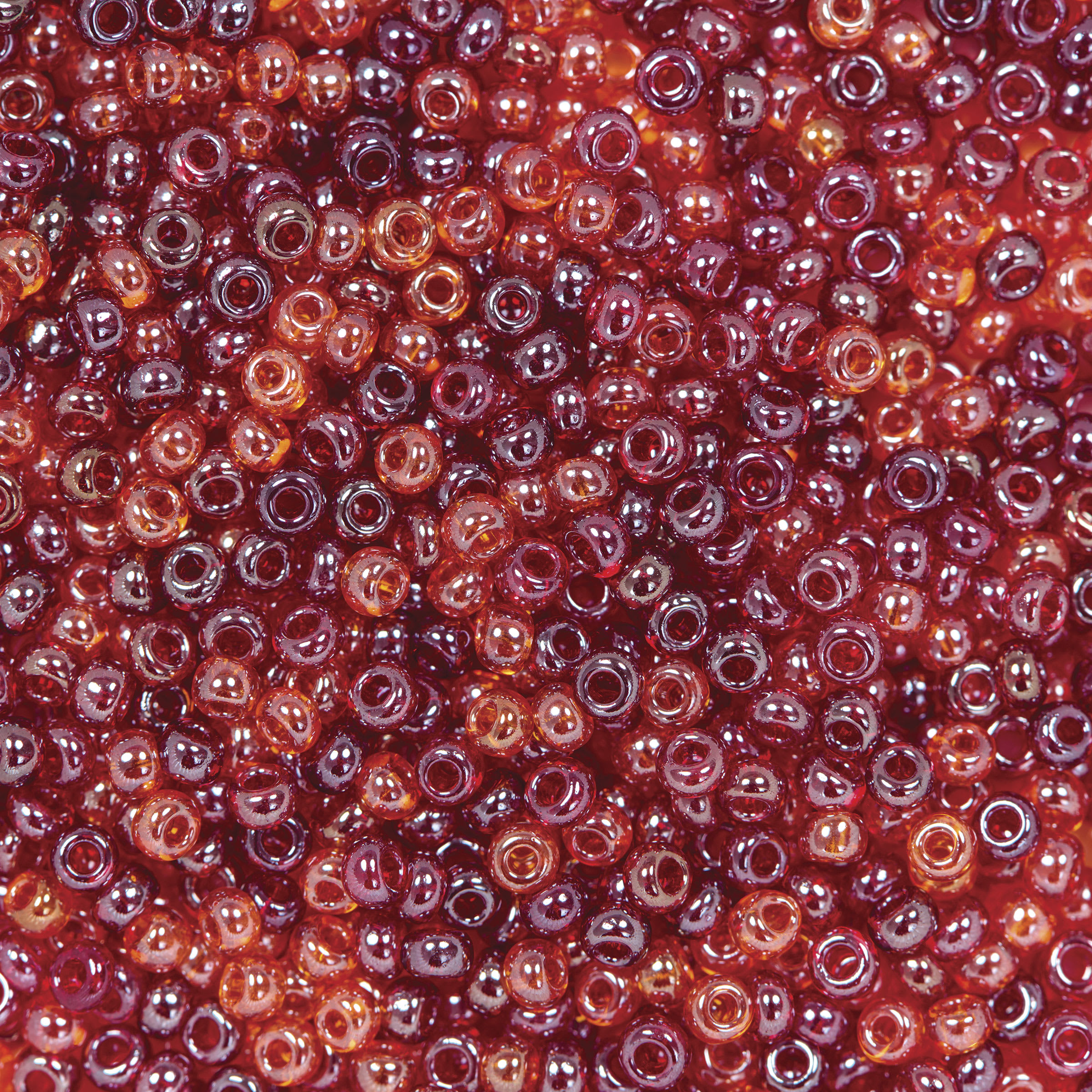 John Bead Czech Glass Seed Beads - Red, Luster Mix, 10/0 - close-up