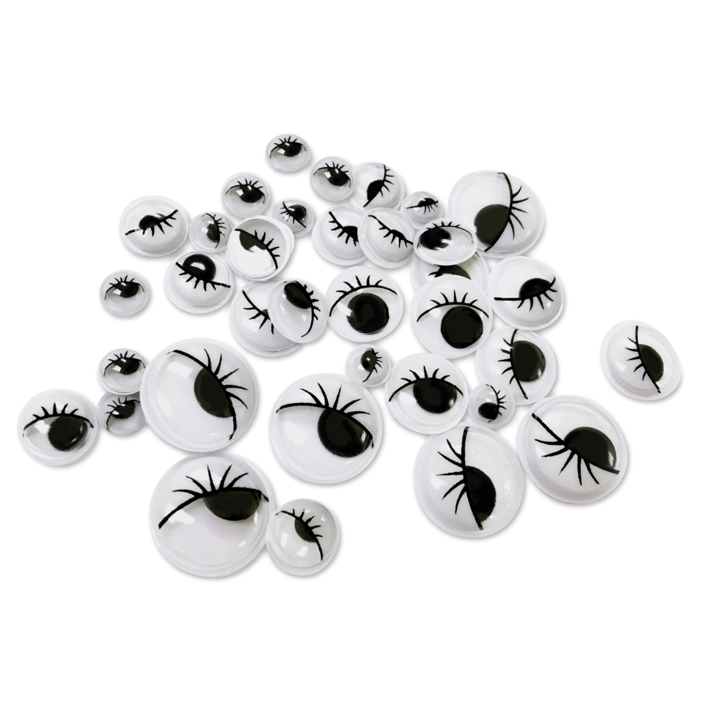 Includes an assortment of eyes featuring fun and flirty painted lashes in sizes varying from 8 mm to 20 mm.