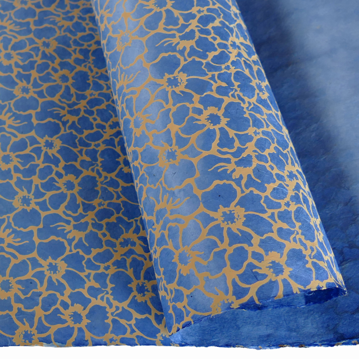 LAMALI Decorative Lokta Paper, 20 in x 30 in, Flowers, Blue, Cream Silkscreen