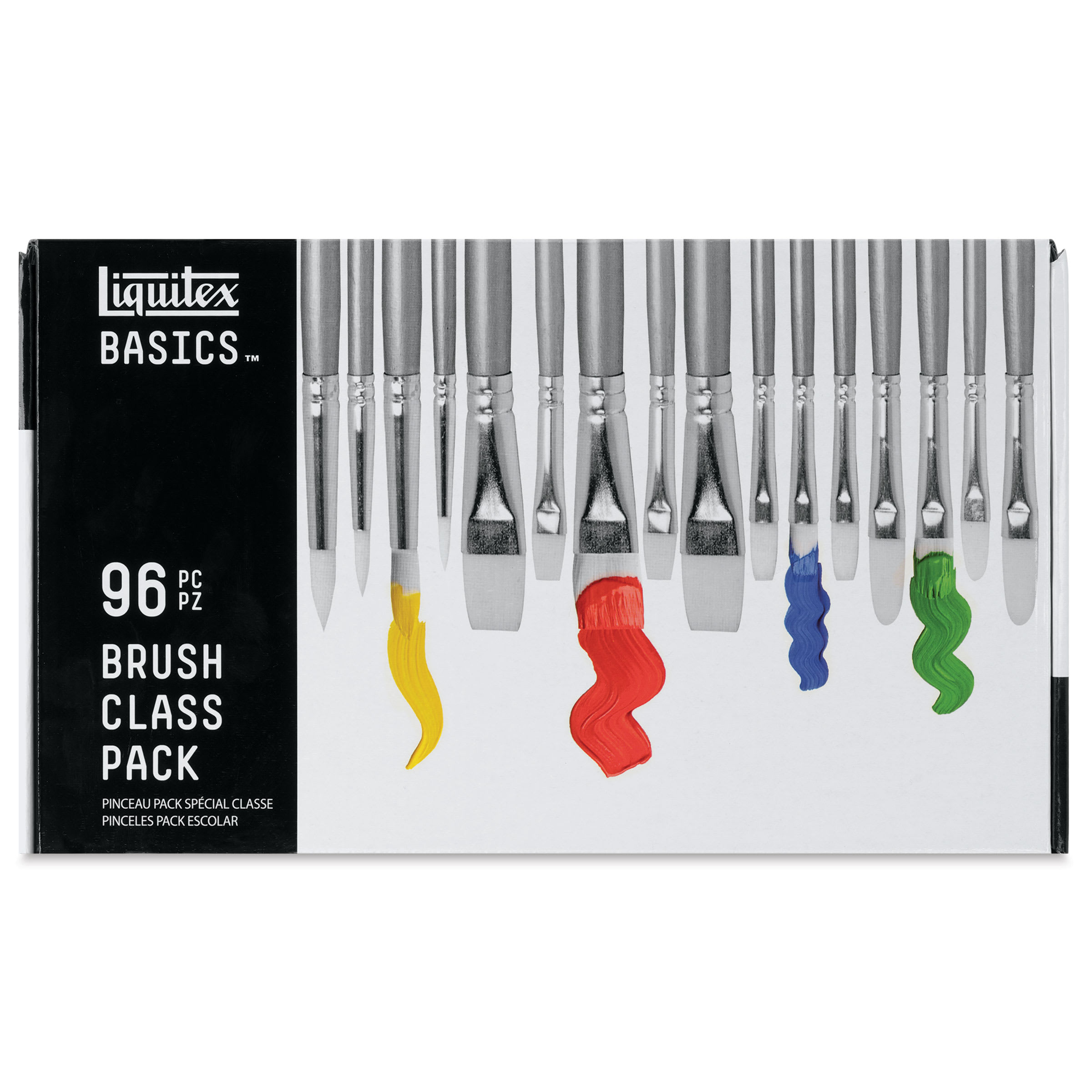 This handy class pack of Liquitex Basics Brushes offers all the brush sizes and shapes a classroom needs. The four shapes (Round, Bright, Filbert, and Flat) can be used for initial designs, adding finishing details, and every stage in between. The class pack includes 96 long-handle brushes, 12 each of size 2, 3, and 6 Rounds; size 3 and 8 Brights; size 2 and 4 Filberts; and size 2 Flats.