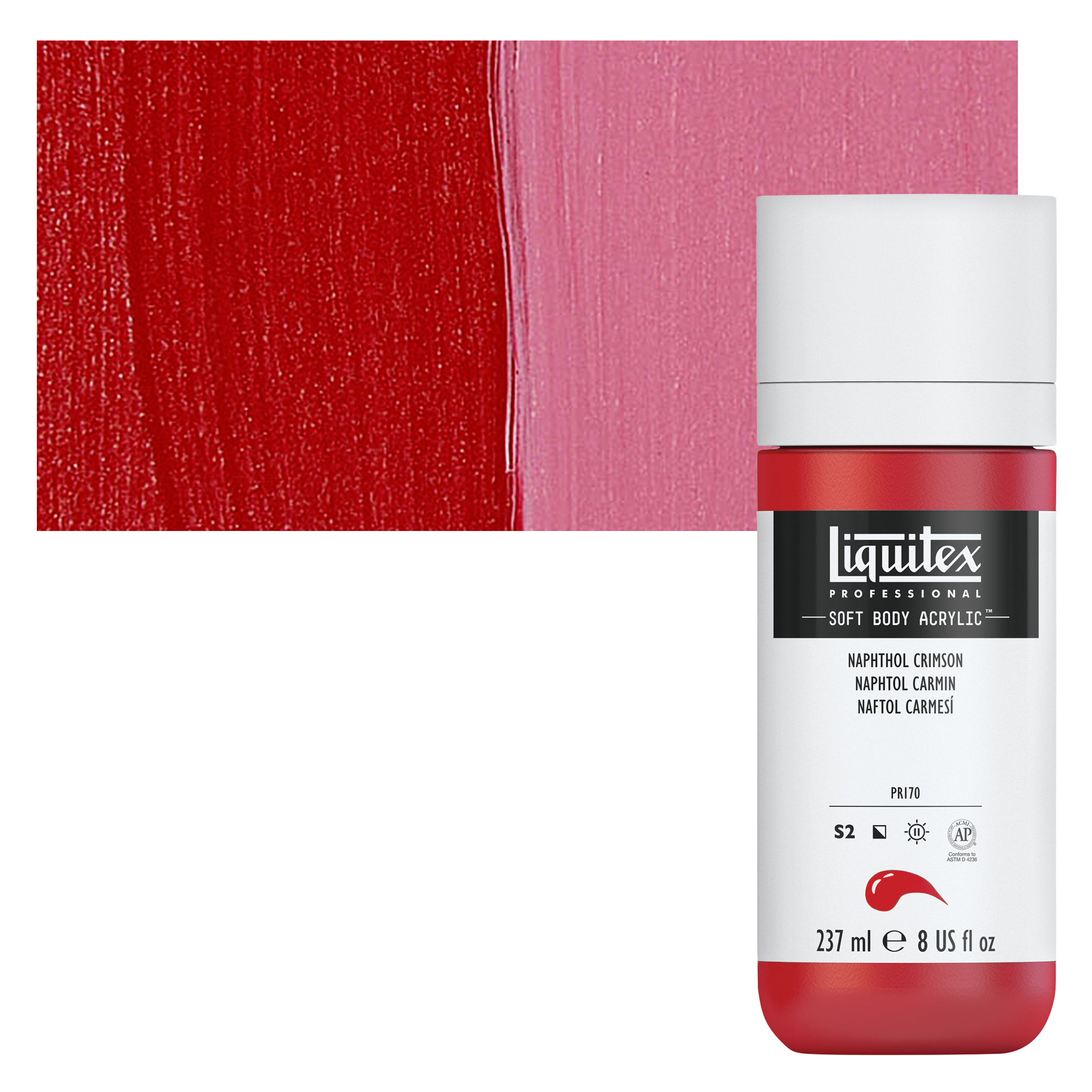 Pigment PR170 is a bright deep red with bluish undertones. It has an average drying time. It has two crystaline forms that differ significantly in opacity. The more transparent form (F5RK) tends to be more bluish and is less lightfast.
