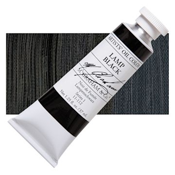 Lamp black is a very opaque, heavily staining black pigment that does not have much covering power. It is typically the most opaque black in watercolor form. Though a very pure black, it tends to muddy slightly in mixtures, is one of the slowest drying pigments in oils, and should not be used under other colors.
