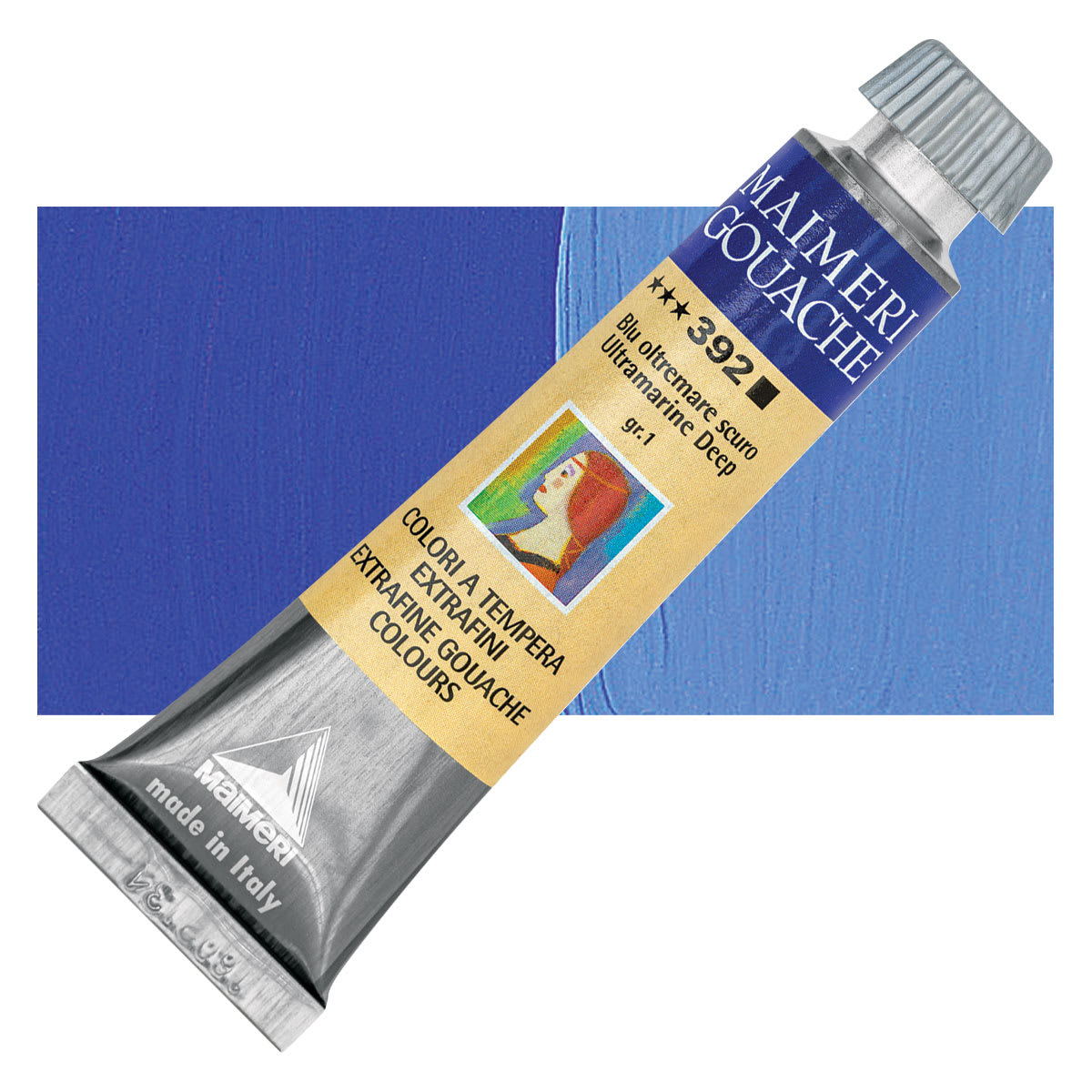 Ultramarine is the standard warm blue, a brilliant blue pigment that has the most purple and least green in its undertone. It has a moderate to high tinting strength and a beautiful transparency. Synthetic Ultramarine is not as vivid a blue as natural Ultramarine. Ultramarine dries slowly in oil and tends to produce clean, though granular, washes in watercolor. French Ultramarine mixes well with Alizarin colors in oil and watercolor form to create a range of purples and violets. It can dull when mixed with white in acrylic form, but mixes well with other colors. The shade varies based on manufacturer. Considered a great color for glazes, it is not suitable for frescoing.