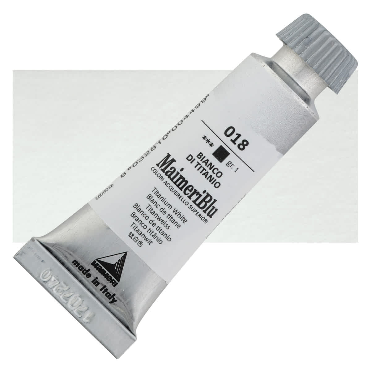 Titanium White is the most brilliant of the white pigments. It is considered an all purpose oil color useful in all techniques and the best all around white. Its masstone is neither warm nor cool, placing it somewhere between Lead White and Zinc White. It is less prone to cracking and yellowing than Lead White, but it still yellows easily. Titanium White dries slowly in oil form, more slowly than Lead White but more quickly than Zinc White. It is opaque in oil and acrylic forms and semi-opaque in watercolor form. This pigment has good chemical stability, and its tinting strength is superior to both Lead White and Zinc White.