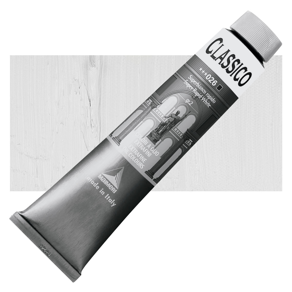 Maimeri Classico Oil Color - Super Rapid White, 200 ml tube and swatch