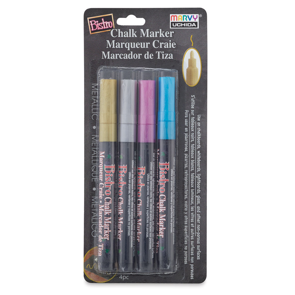 Includes one each of Metallic Gold, Metallic Silver, Metallic Red, and Metallic Blue.
