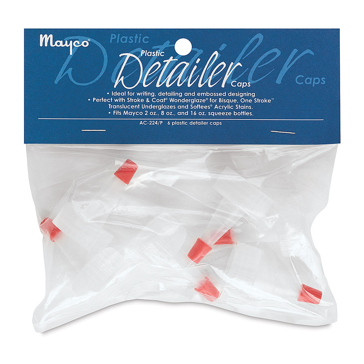 This set of six threaded plastic caps with detailer tips can be fitted to 2 oz, 8 oz, and 16 oz squeeze bottles.