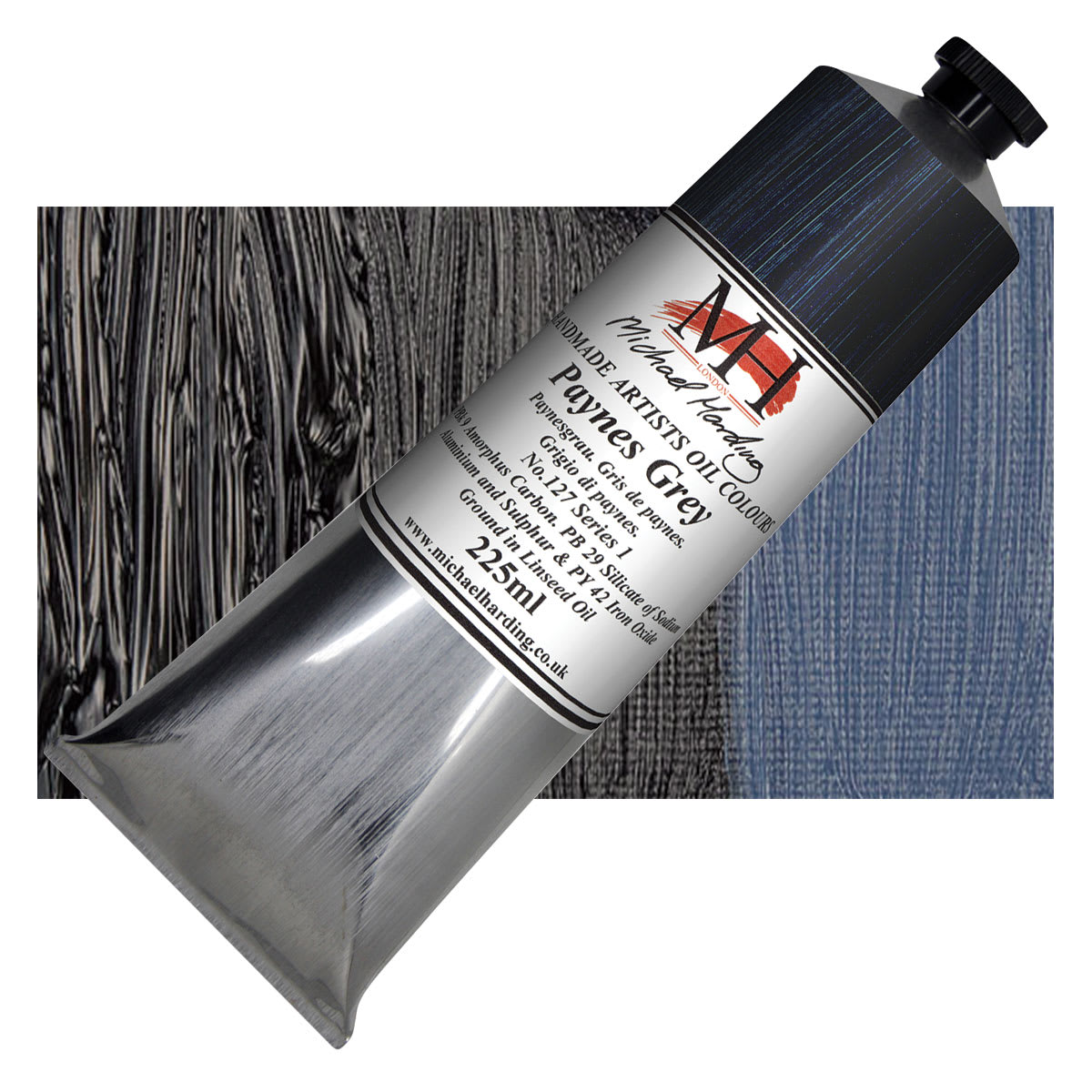 Ivory Black is a cool, semi-transparent blue-black with a slight brownish undertone and average tinting strength. It mixes well with any color, and creates a range of dull greens when mixed with yellow. It has good properties for use in oil, can be slow to dry in oil form, and should never be used in underpainting or frescoing. Ivory Black is denser than Lamp Black.