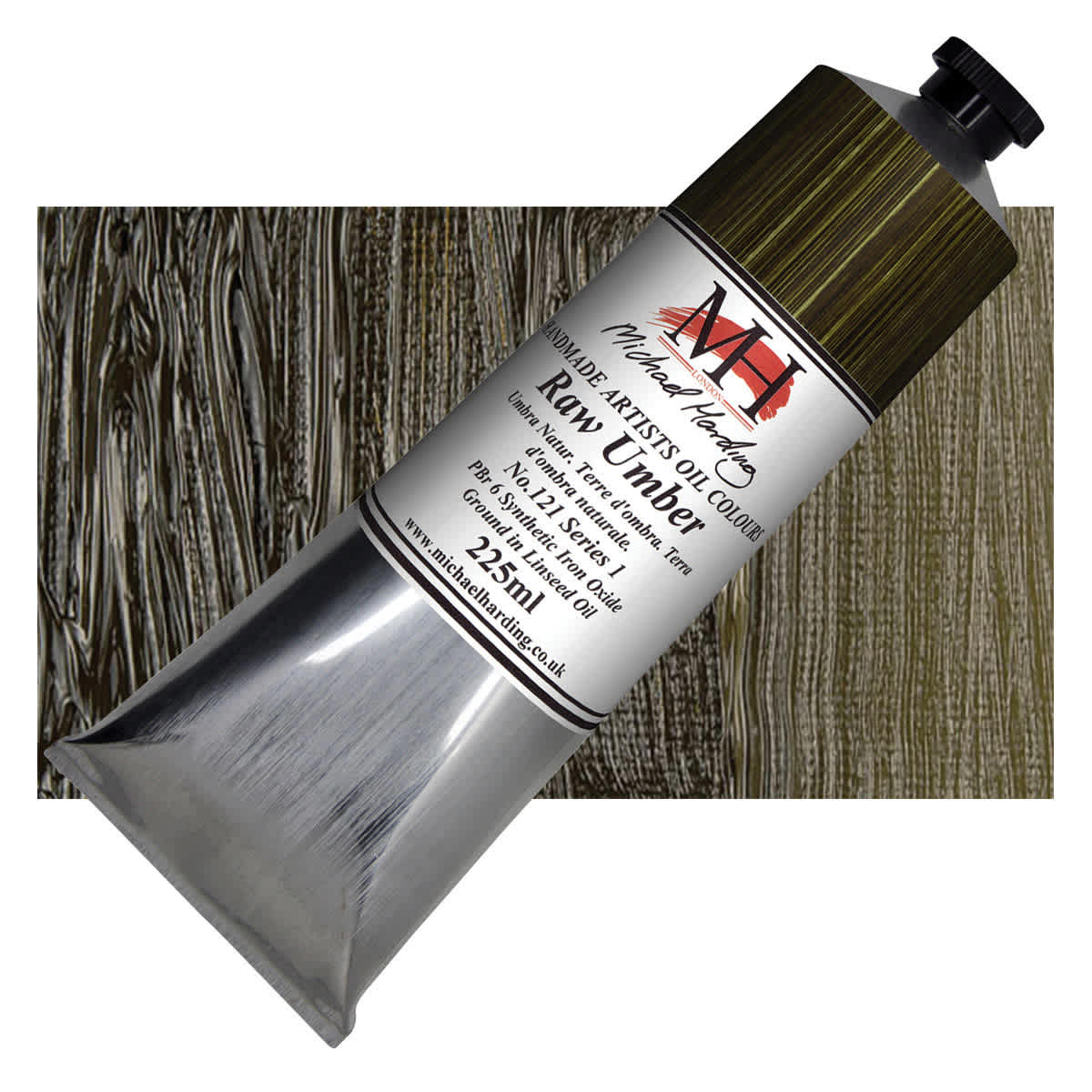 Michael Harding Artists Oil Paint - Raw Umber, 225 ml tube and swatch