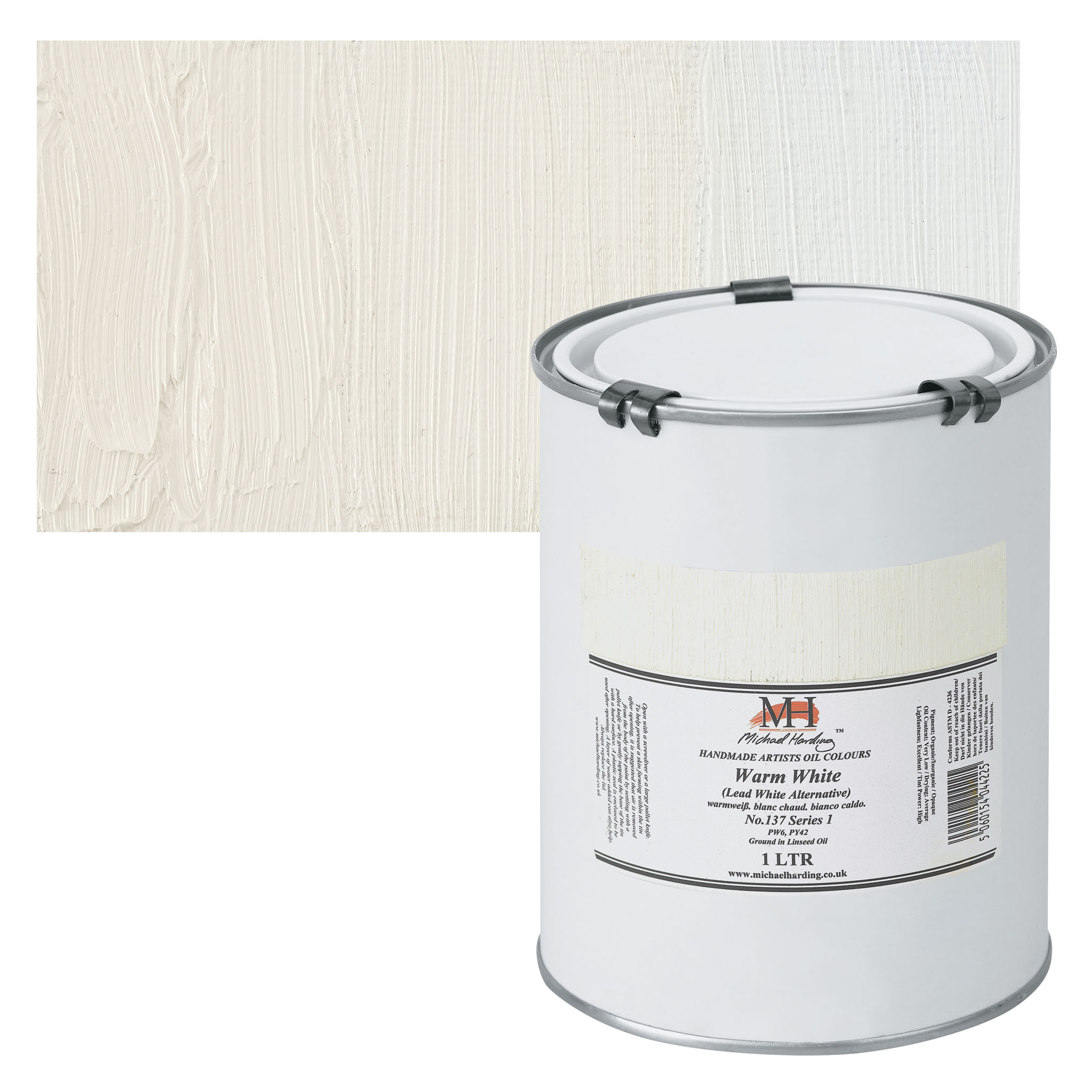 Titanium White is the most brilliant of the white pigments. It is considered an all purpose oil color useful in all techniques and the best all around white. Its masstone is neither warm nor cool, placing it somewhere between Lead White and Zinc White. It is less prone to cracking and yellowing than Lead White, but it still yellows easily. Titanium White dries slowly in oil form, more slowly than Lead White but more quickly than Zinc White. It is opaque in oil and acrylic forms and semi-opaque in watercolor form. This pigment has good chemical stability, and its tinting strength is superior to both Lead White and Zinc White.