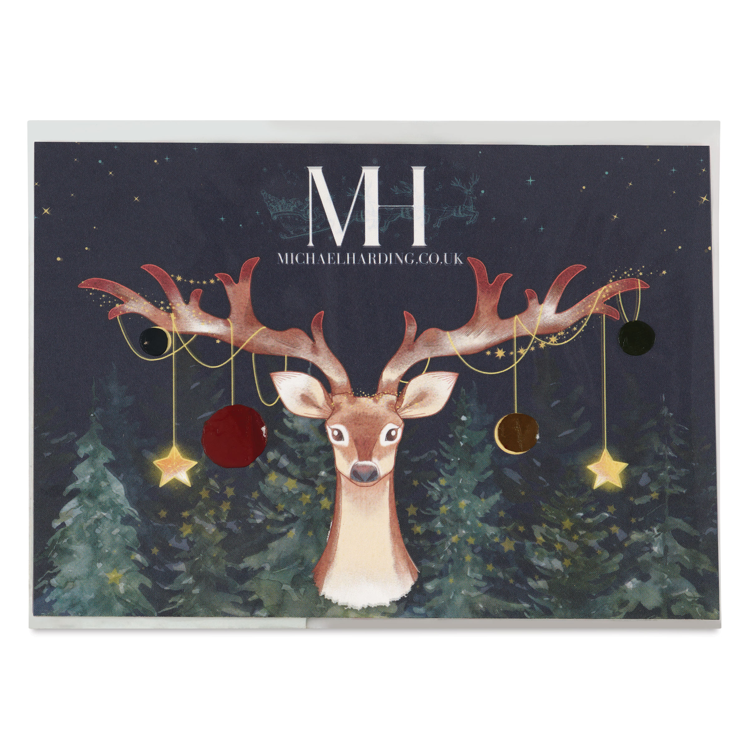 This card includes Moss Green, Ultramarine Blue, New Gamboge, and Perylene Crimson.