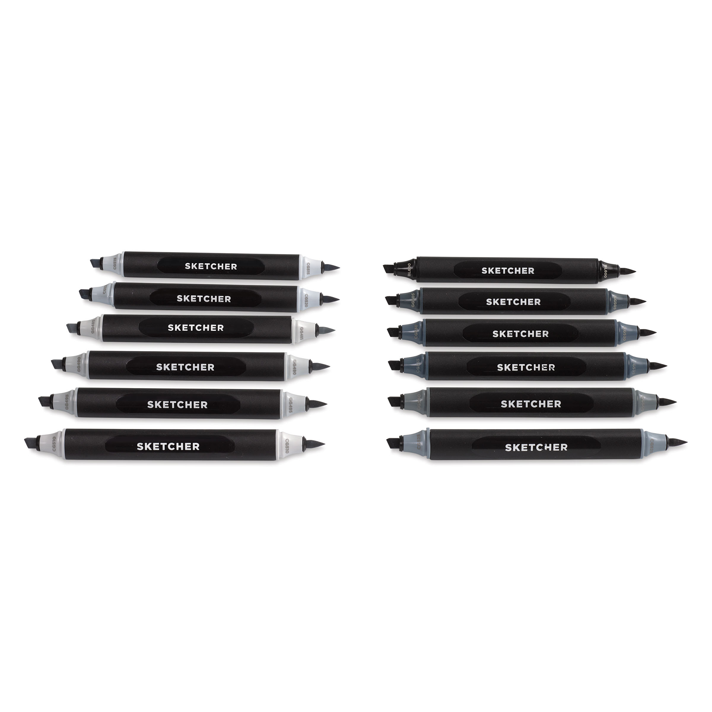 Includes one each of Green Grey 1 (485), Green Grey 2 (490), Green Grey 3 (495), Green Grey 4 (500), Green Grey 5 (505), Cool Grey 1 (510), Cool Grey 2 (515), Cool Grey 3 (520), Cool Grey 4 (525), Cool Grey 5 (530), Cool Grey 6 (535), and Black 600.
