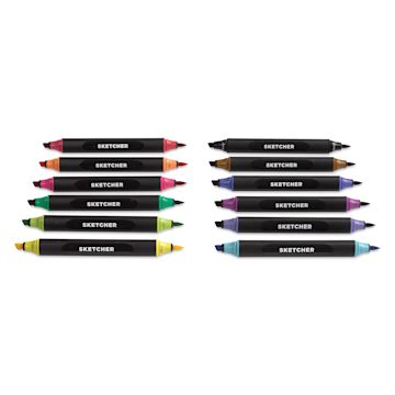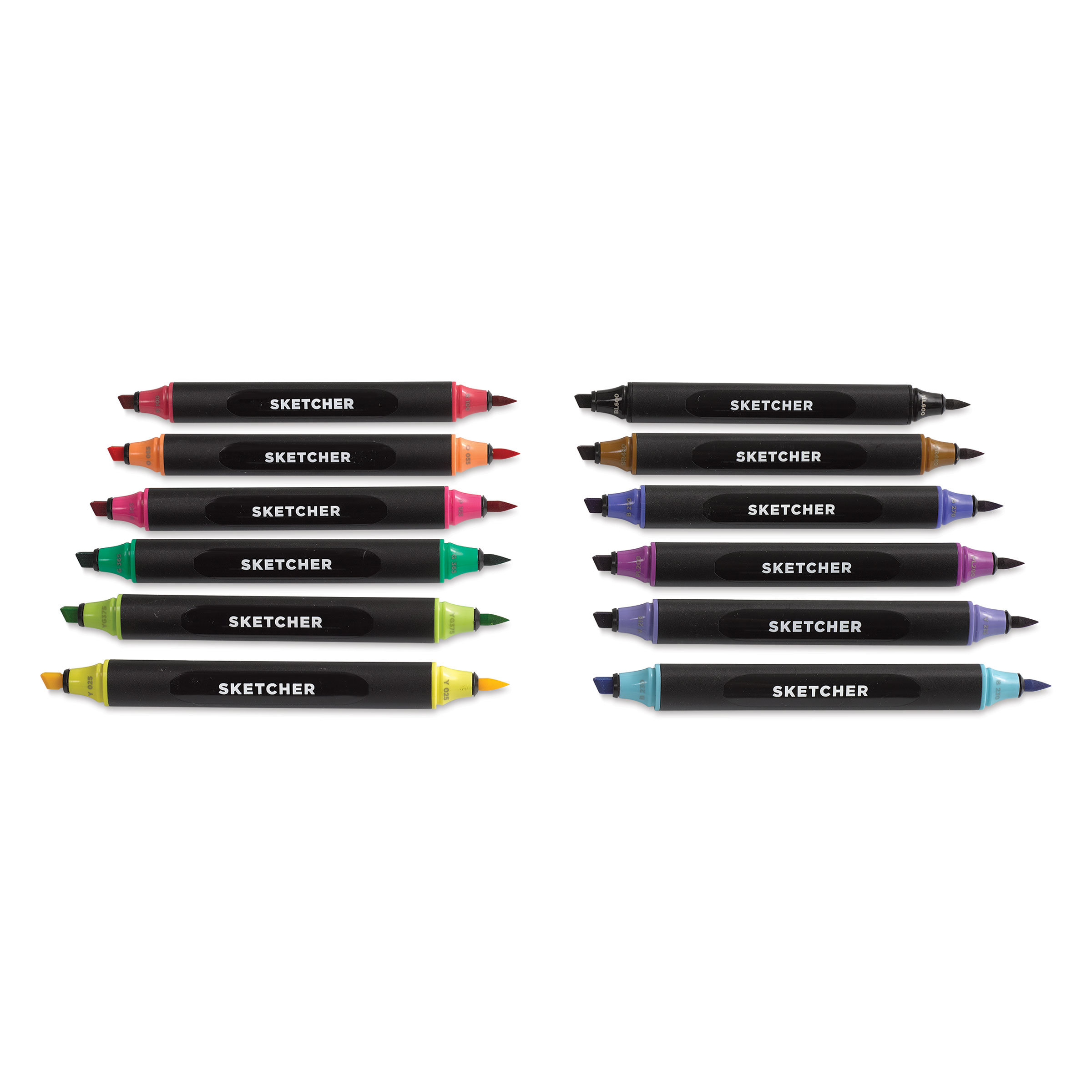 Includes one each of Yellow 025, Orange 055, Deep Red 100, Shock Pink 165, Lavender 200, Violet 215, Crystal Blue 230, Ultramarine Blue 270, Emerald 365, Lime Juice 375, Burnt Sienna 480, and Black 600.