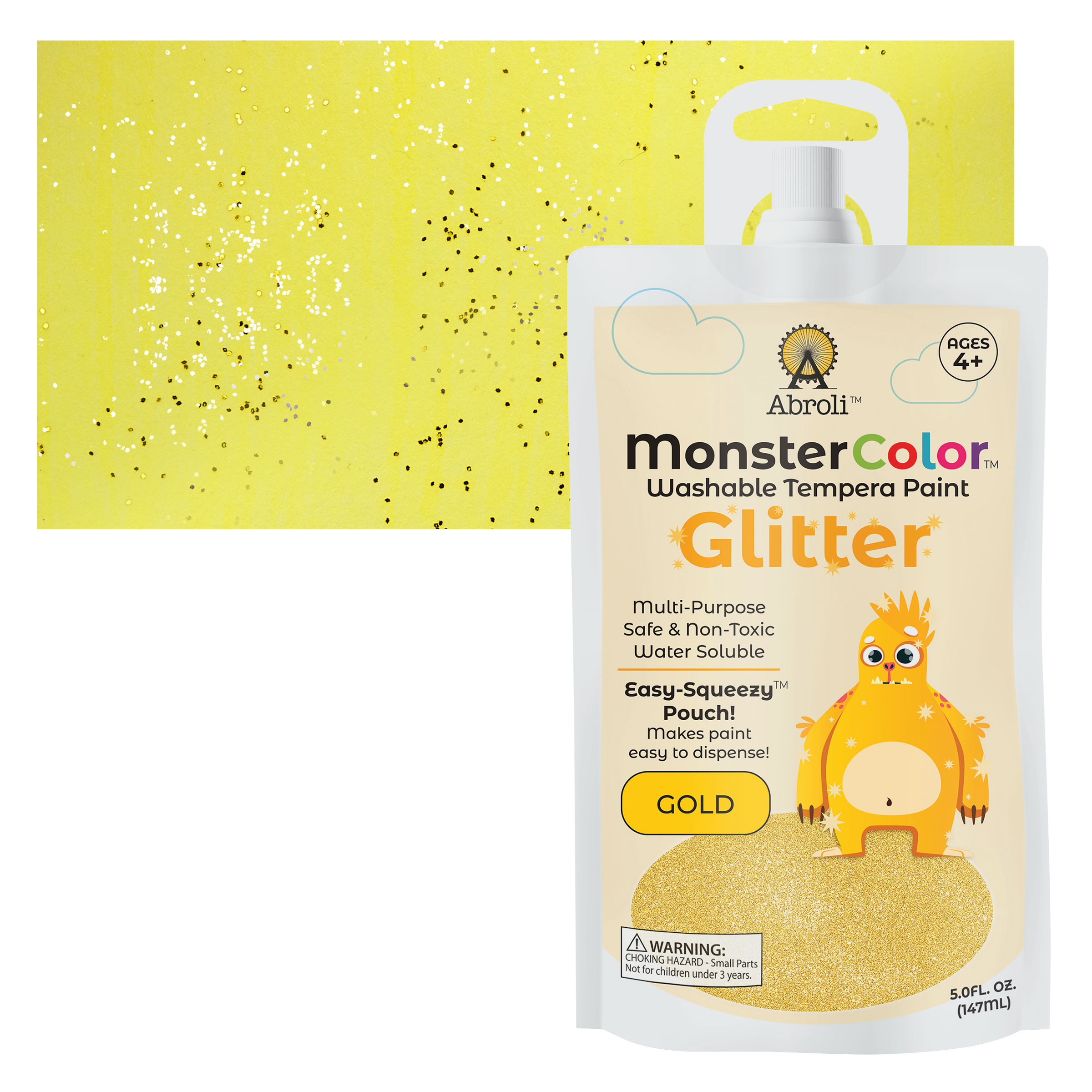 NEW!Abroli MonsterColor Washable Tempera Paint - Gold Glitter, 5 oz Pouch