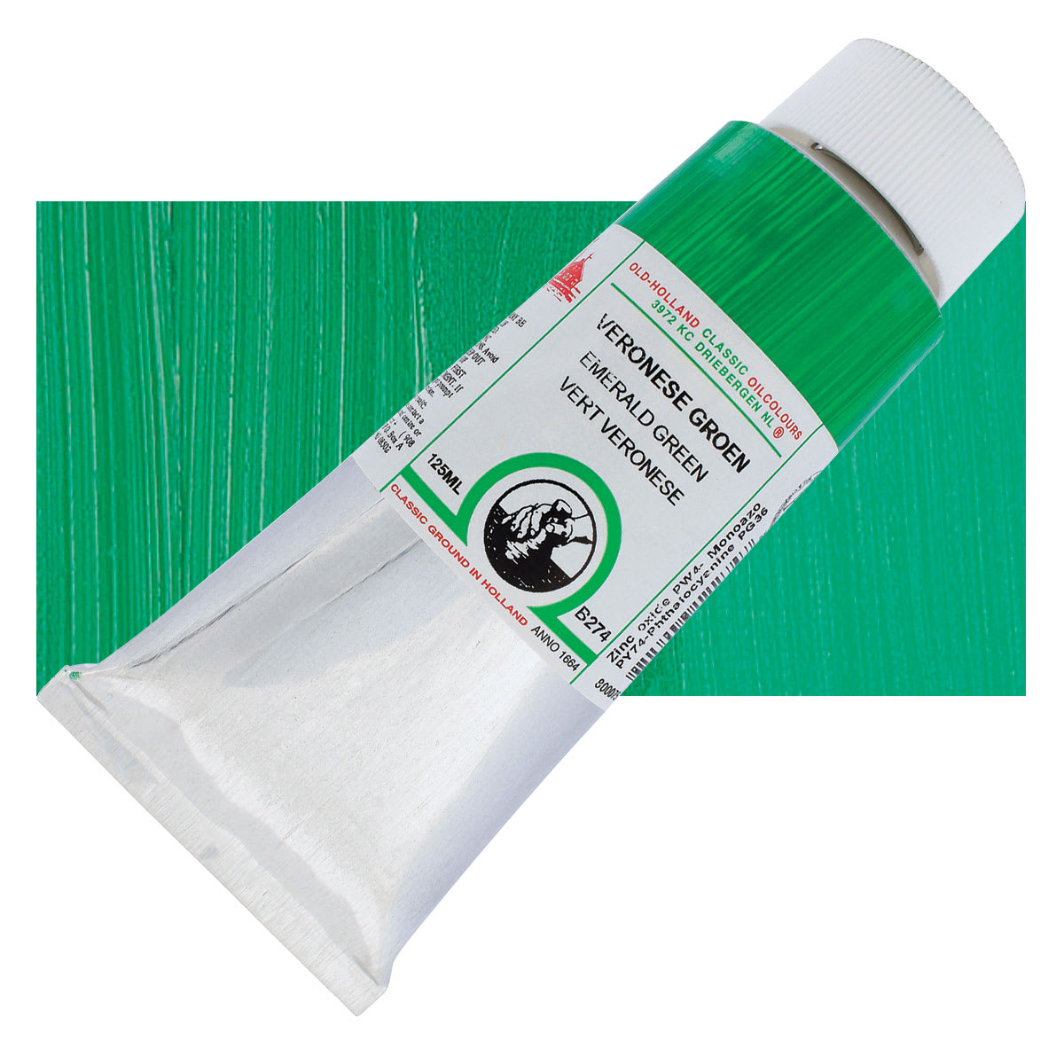 Phthalo Green is a transparent, cool, bright, high intensity color used in oil and acrylics. It comes from a Phthalocyanine Blue pigment where most of the hydrogen atoms have been replaced with chlorine, forming highly stable molecules. Pigment PG36 differs from PG7 in that a portion of the chlorine atoms are replaced with bromine atoms, which are reactively similar, but cause a yellow shift that is especially noticeable in mixtures. Phthalo Green has similar pigment properties and permanence to Phthalo Blue. It is slow drying and an excellent base color for mixing a range of bright greens. Phthalo Green is considered a very good alternative to Viridian because it is intense and mixes well and can be used to emphasize mineral colors in various tints. However, its tinting strength is very high, so it can overpower other colors. This pigment most closely resembles the discontinued and toxic Verdigris.