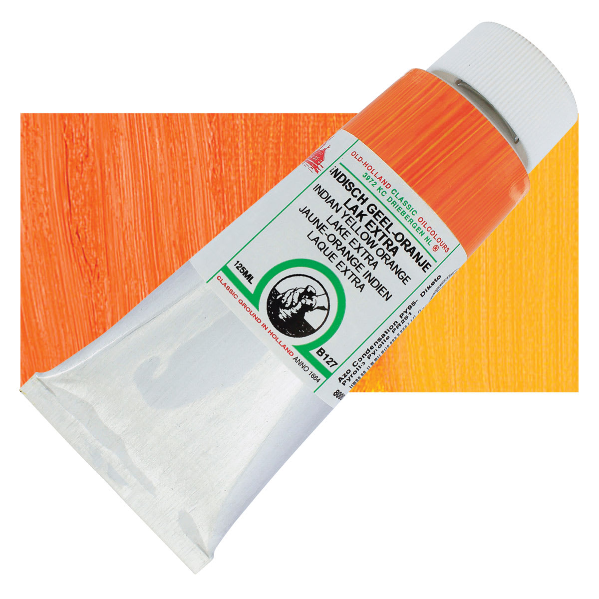 Pyrazoloquinazolone Scarlet is a contemporary substitute for Vermilion, a pigment that contains toxic mercuric sulfide.