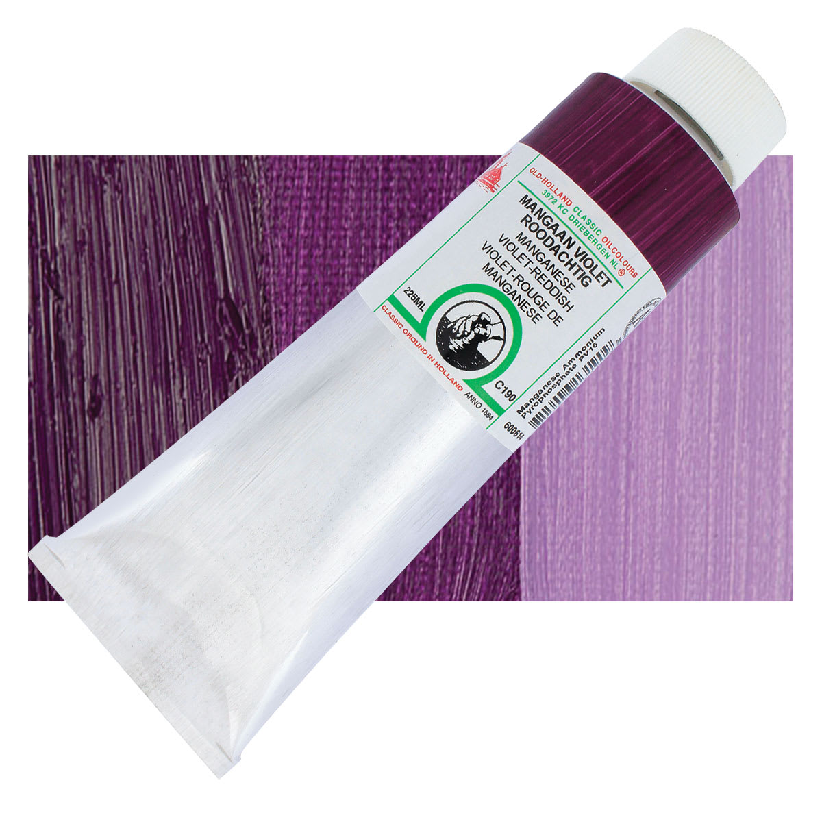 Manganese Violet is a semi-transparent, bluish-violet pigment with a discrete opacity and low tinting strength. It is the reddest of the violets, and it covers and dries well in oil and tempera. It also performs well in pastel, encaustic, and watercolor. Manganese Violet is not well suited for fresco or acrylic painting. There can be significant differences in color across brands. It shares similar properties with bluish shades of Cobalt Violet.