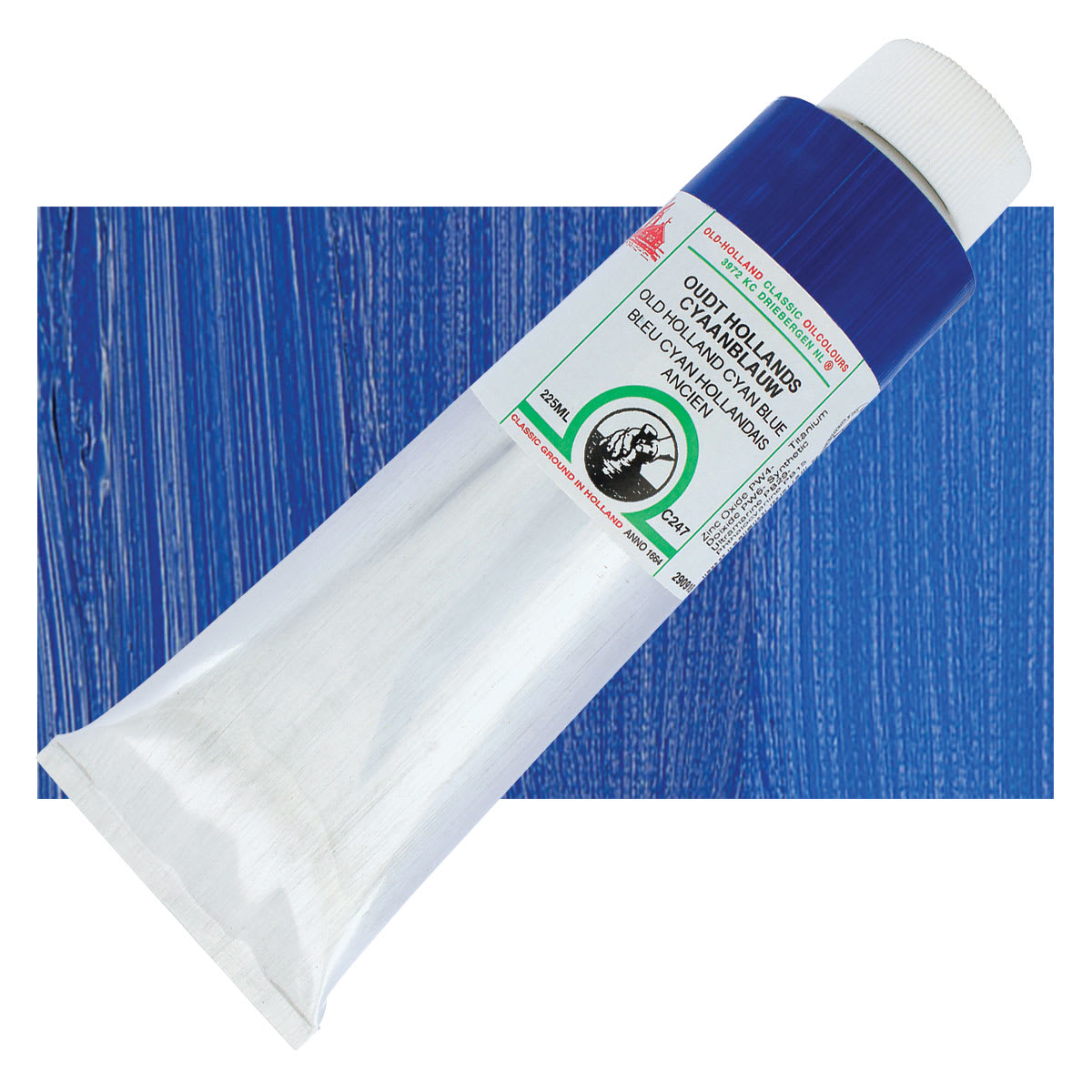 Phthalo Blues are pure and clean primary blues with superior covering power. They have a very high tinting strength and tend to overwhelm other pigments, but if color strength can be controlled, they make predictable mixed colors. In oil form, blues are very deep and slow drying. When mixed with other colors or if chlorine is added, Phthalo Blue quickly tends towards green. When using alone, mix with some white, as Phthalo Blue can be semi-transparent and almost black on its own. It is among the most compatible of modern colors with mineral colors and is considered more reliable than Prussian Blue, while sharing the same physical and color properties. Phthalo Blue is a good color for glazing.