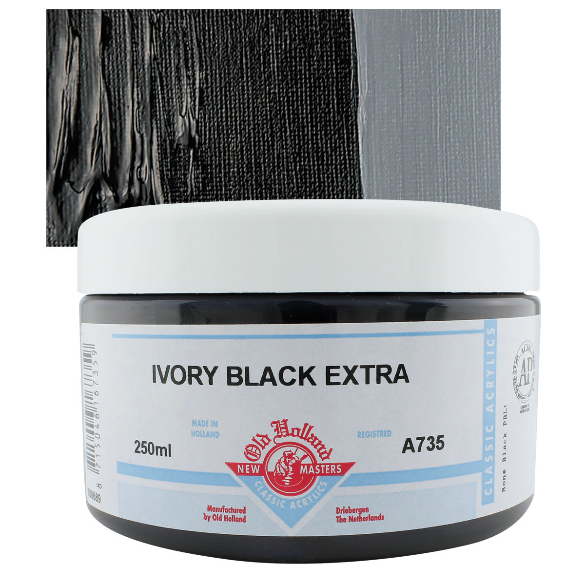 Bone Black is a carbon black pigment produced from charring animal bones, usually done at high temperature in a kiln, similar to Ivory Black.