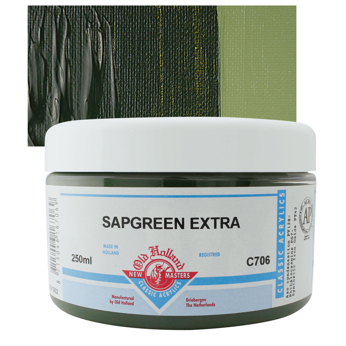 Phthalo Green is a transparent, cool, bright, high intensity color used in oil and acrylics. It comes from a Phthalocyanine Blue pigment where most of the hydrogen atoms have been replaced with chlorine, forming highly stable molecules. It has similar pigment properties and permanence to Phthalo Blue. It is slow drying and an excellent base color for mixing a range of bright greens. Phthalo Green is considered a very good alternative to Viridian because it is intense and mixes well and can be used to emphasize mineral colors in various tints. However, its tinting strength is very high, so it can overpower other colors. This pigment most closely resembles the discontinued and toxic Verdigris.