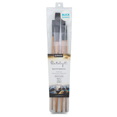 Includes four brushes, one each Bright 4, Flat 10, Filbert 8, and Round 2.