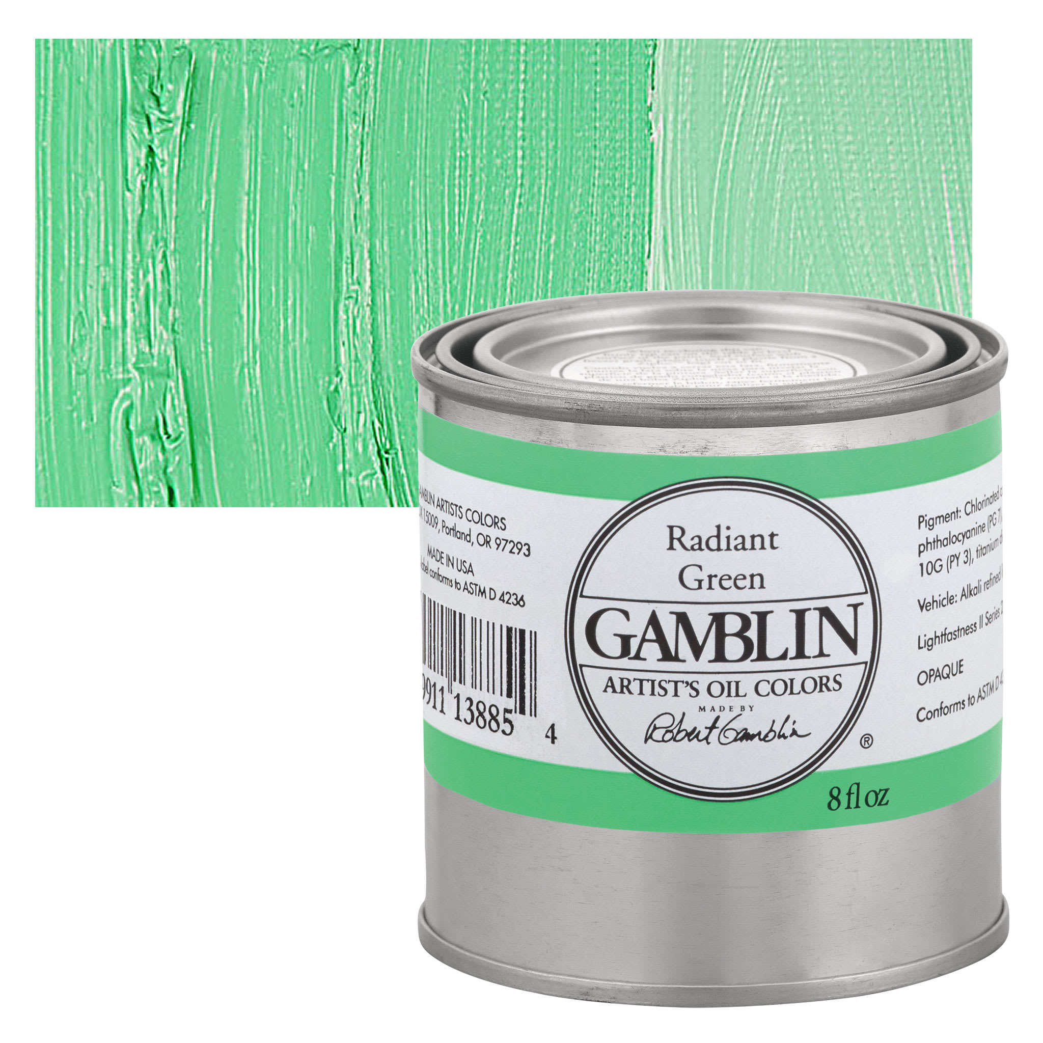 Phthalo Green is a transparent, cool, bright, high intensity color used in oil and acrylics. It comes from a Phthalocyanine Blue pigment where most of the hydrogen atoms have been replaced with chlorine, forming highly stable molecules. Pigment PG36 differs from PG7 in that a portion of the chlorine atoms are replaced with bromine atoms, which are reactively similar, but cause a yellow shift that is especially noticeable in mixtures. Phthalo Green has similar pigment properties and permanence to Phthalo Blue. It is slow drying and an excellent base color for mixing a range of bright greens. Phthalo Green is considered a very good alternative to Viridian because it is intense and mixes well and can be used to emphasize mineral colors in various tints. However, its tinting strength is very high, so it can overpower other colors. This pigment most closely resembles the discontinued and toxic Verdigris.