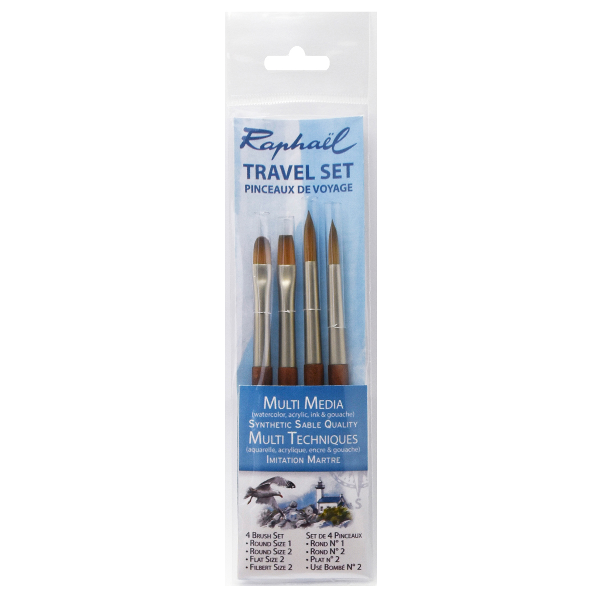 Includes size 1 and 1 Round, size 2 Flat, and size 2 Filbert brushes.