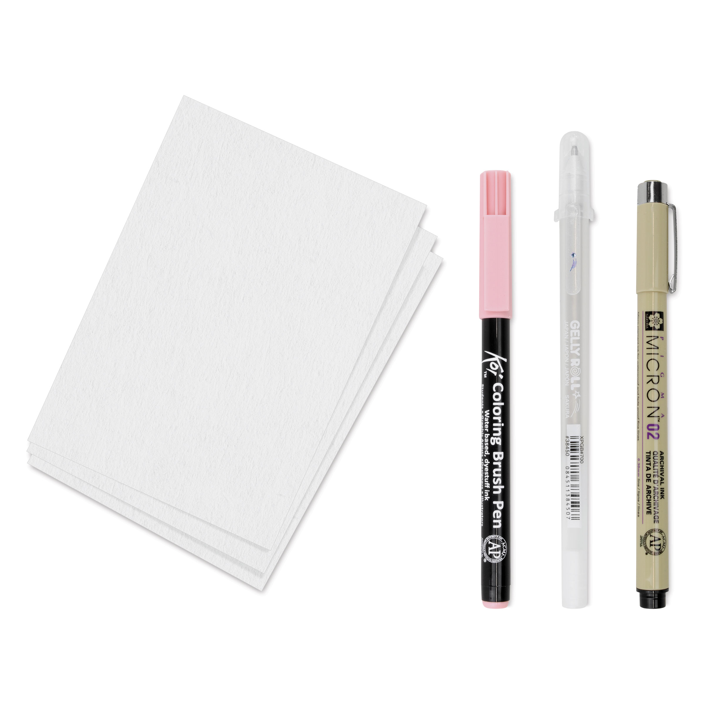 Bring a dreamy cherry blossom to life with crisp lines, delicate color, and a hint of shimmer—just follow the video to make it your own! The kit comes with one Pigma Micron 02 Fineliner in Black, one Gelly Roll Stardust Pen in Clear Star, and one Koi Coloring Brush Pen in Fuchsia, plus 3 sheets of A6 postcard size Koi Mixed Media Paper.