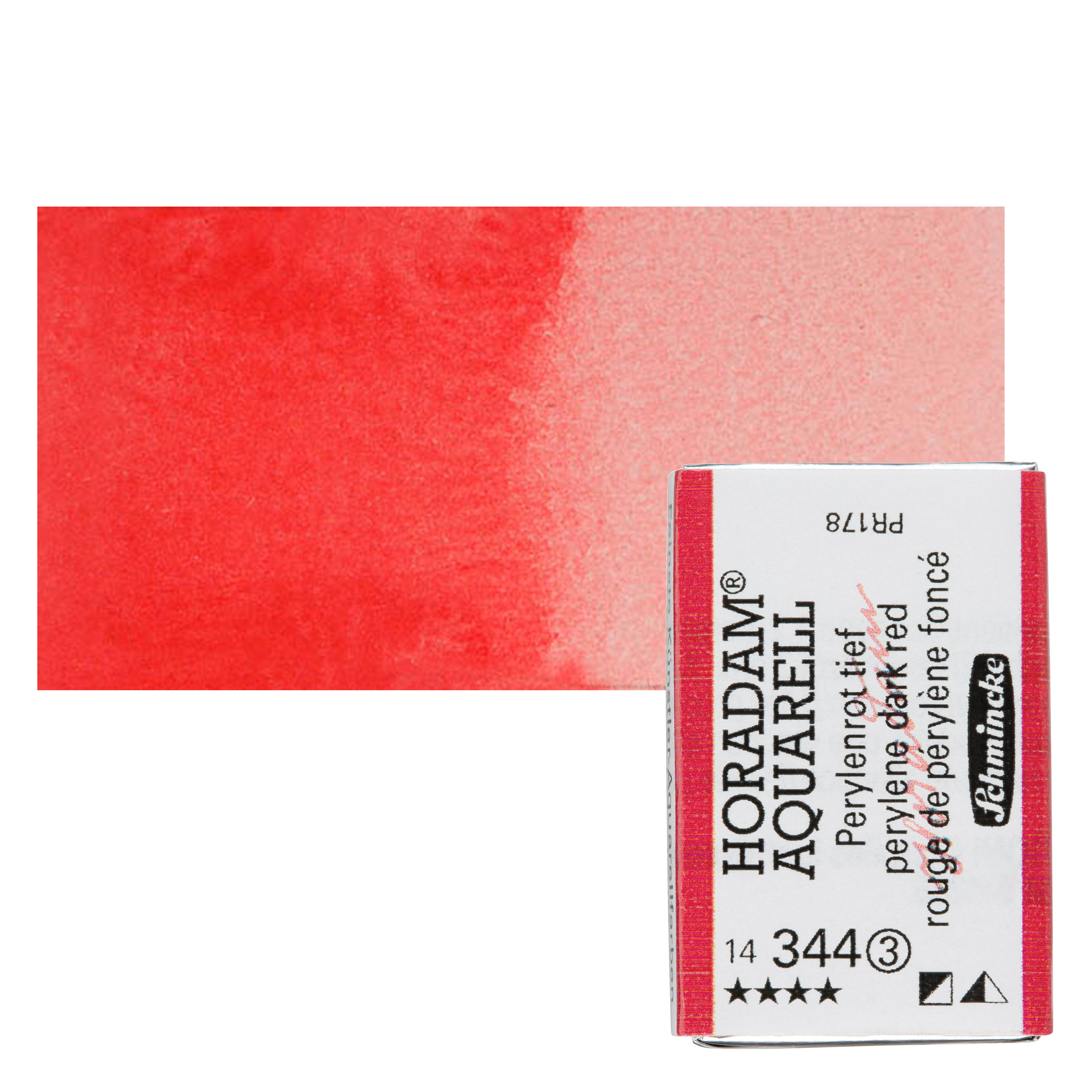 Perylene Red is a moderately intense, semi-opaque, medium red pigment, appearing somewhere between a Cadmium Red and a Cadmium Deep Red hue. It has excellent brightness and tinting strength. Its partial transparency makes it useful as a glazing color.
