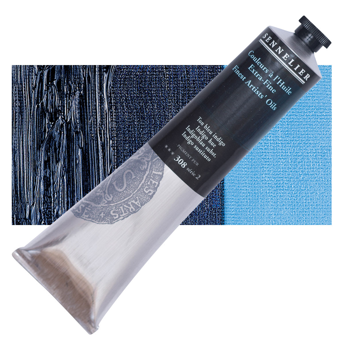 Sennelier Artists' Extra Fine Oil Paint - Indigo Hue, 200 ml tube and swatch