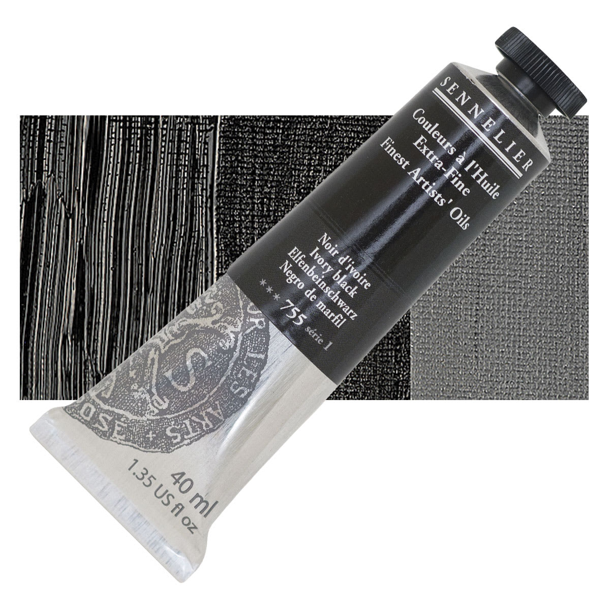 Ivory Black is a cool, semi-transparent blue-black with a slight brownish undertone and average tinting strength. It mixes well with any color, and creates a range of dull greens when mixed with yellow. It has good properties for use in oil, can be slow to dry in oil form, and should never be used in underpainting or frescoing. Ivory Black is denser than Lamp Black.