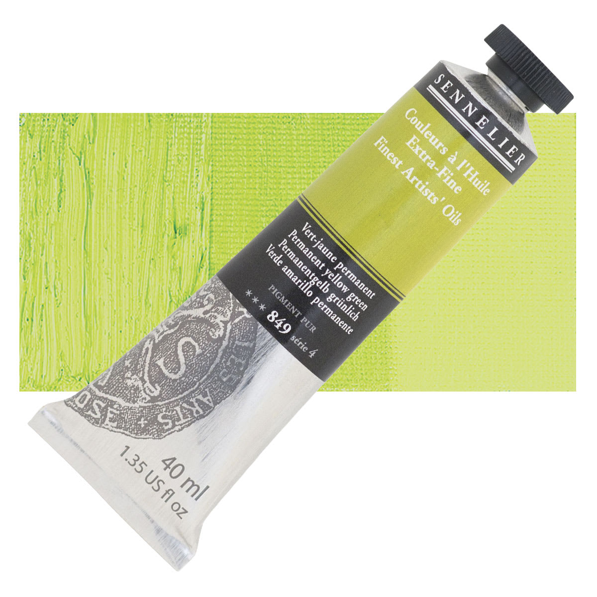 Cadmium Yellow is brilliant, dense, and opaque, with good tinting strength and very high hiding power. It is the artist's principal bright yellow and is available in light, medium, and dark shades. The deeper shades appear deep orange and have the greatest tinting strength. It is slow-drying in oil form and is used in both oil and watercolor form. A clean Cadmium Orange is created when Cadmium Yellow is mixed with Cadmium Red. Hues vary by brand. Cadmium pigments have been partially replaced by azo pigments, which are similar in lightfastness to the cadmium colors, cheaper, and non-toxic. Cadmium Yellow is usually available in a pure grade, or in a cadmium-barium mix. This mix has the same permanence with a lower tinting strength.