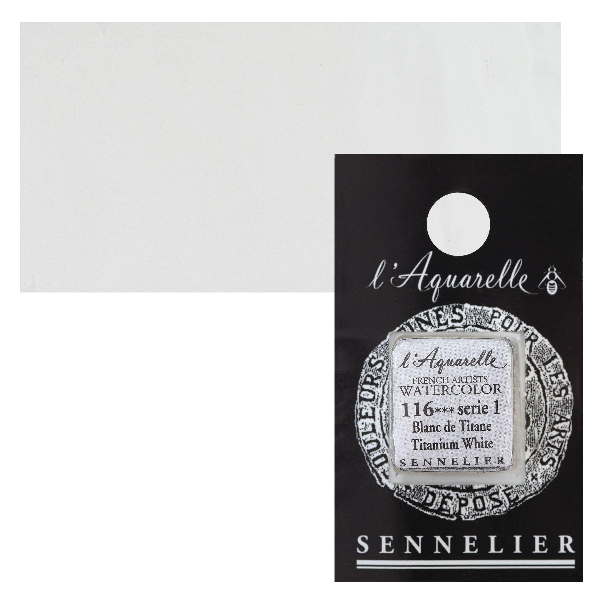 Sennelier French Artists' Watercolor - Titanium White, Half Pan and swatch
