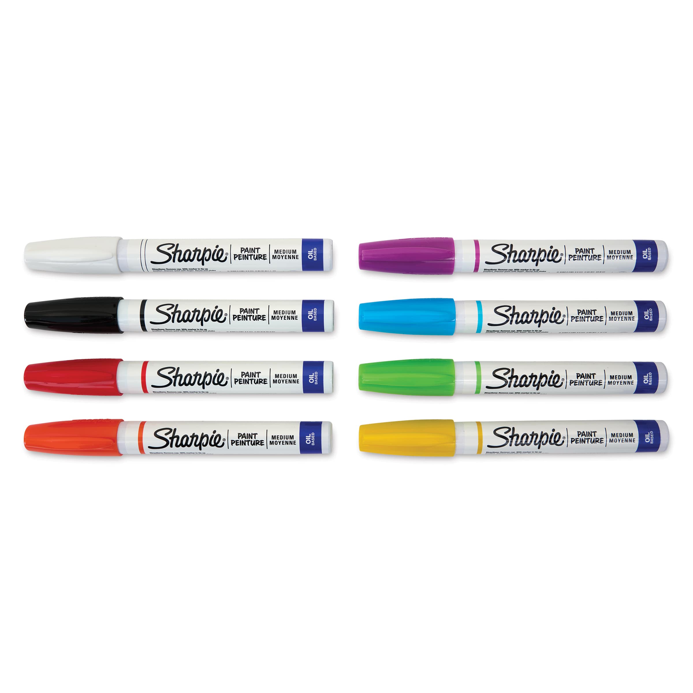 This set includes one each of the following colors: Aqua, Black, Lime Green, Magenta, Orange, Red, White, and Yellow.