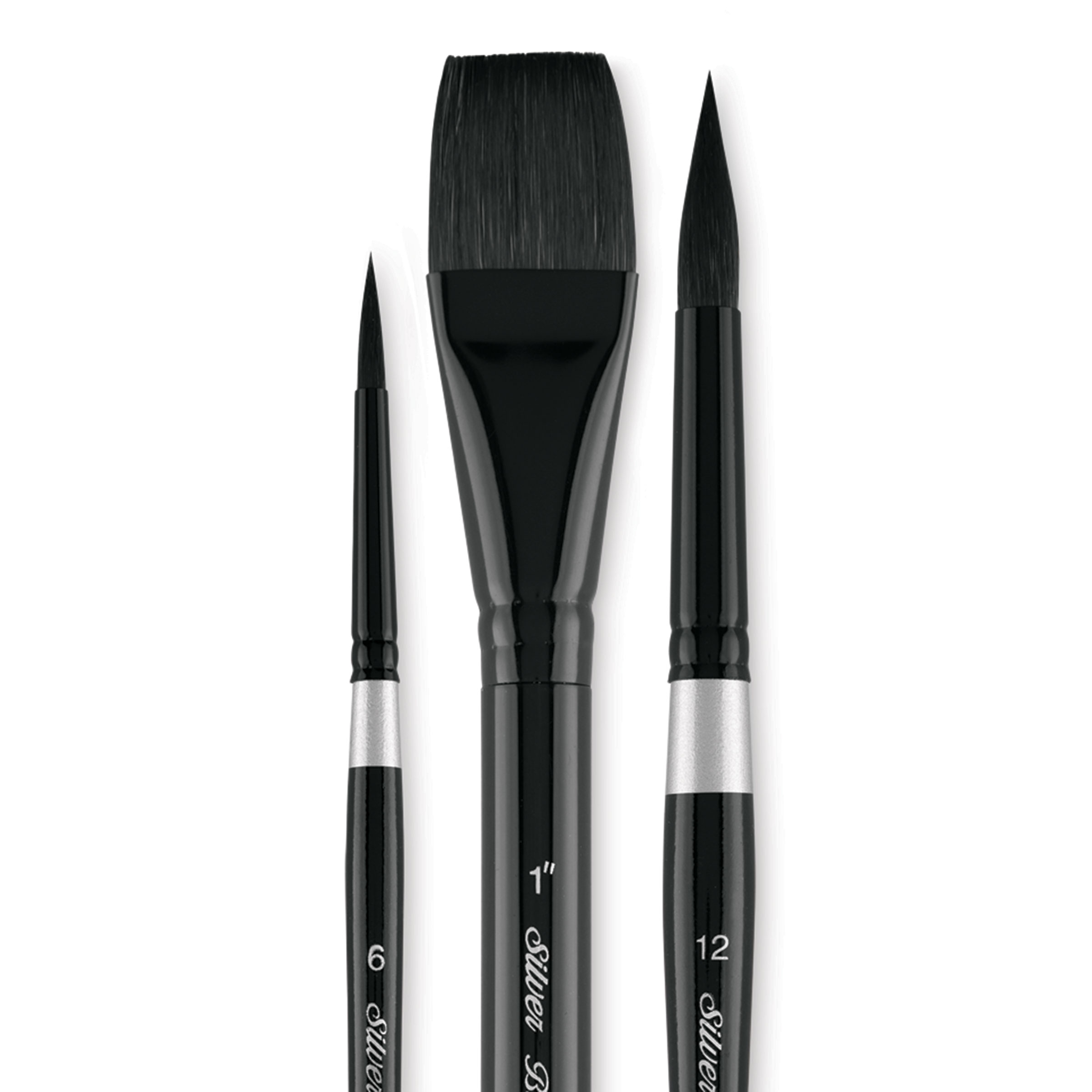This set contains one Series 3000 Round size 6, one Series 3000 Round size 12, and one Series 3008 Square Wash size 1" brushes.
