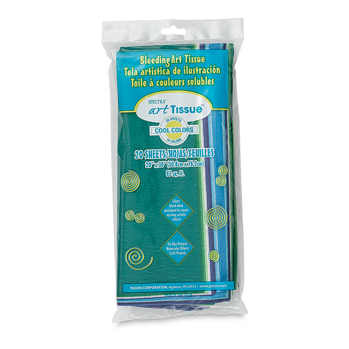 Spectra Deluxe Bleeding Art Tissue - 20" x 30", Cool Colors (Assorted), 20 Sheets