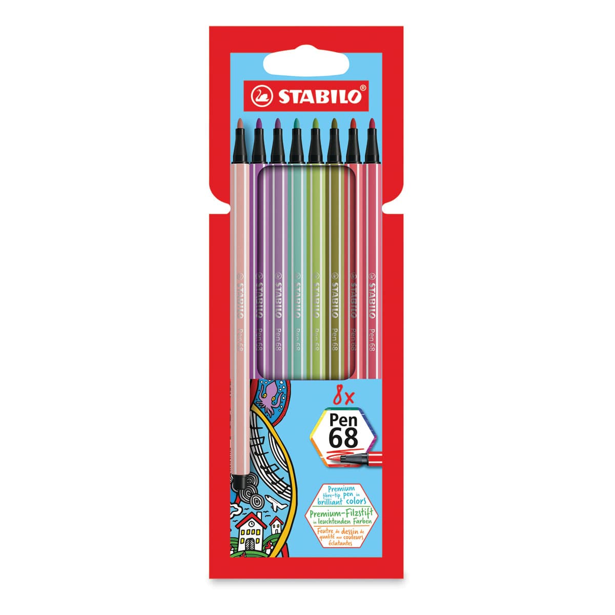 Stabilo Pen 68 Set - Set of 8, Soft Colors