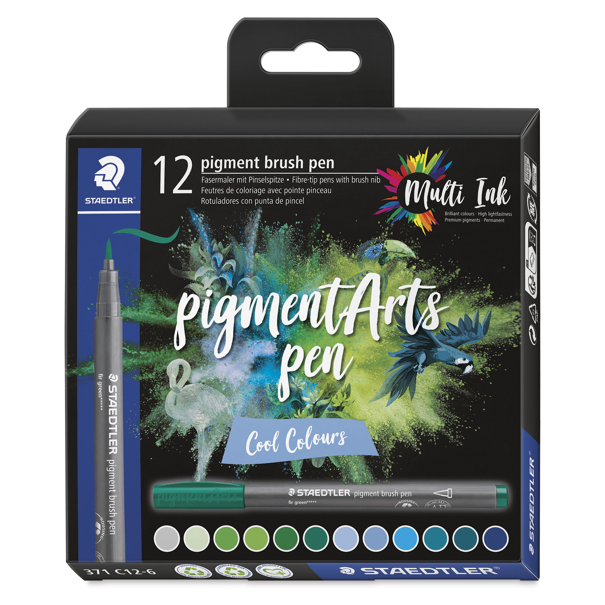 Includes one each of Cool Grey Light 870, Pastel Green 507, Willow Green 51, May Green 513, Green 5, Fir Green 539, Hazy Blue 308, Delft Blue 63, Light Blue 30, Teal 355, Petrol Blue 395, and Navy Blue 399.